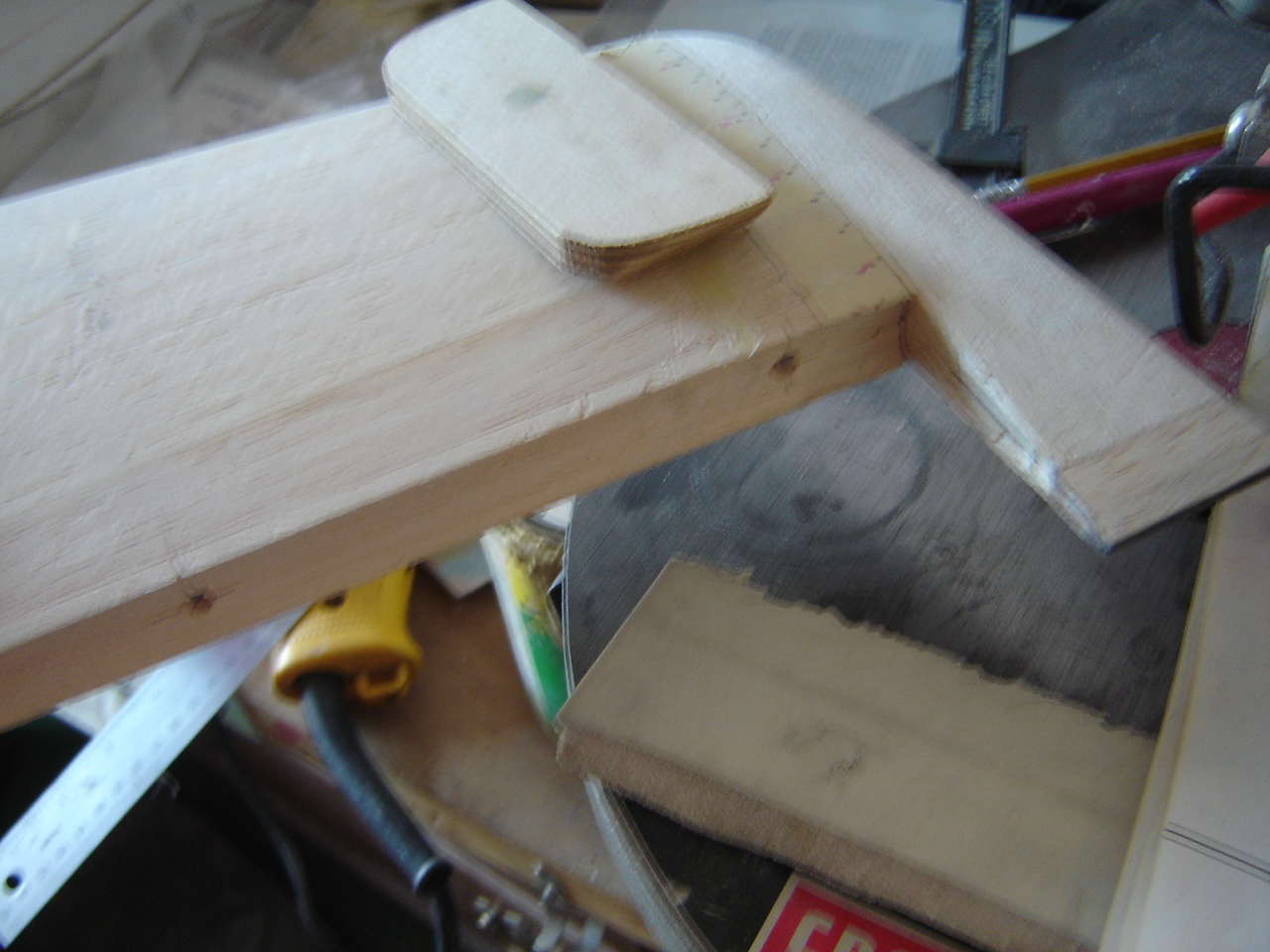 In the past and STILL never maiden ed is the 1971 Top Flite stand off scale 'Red box Edition, Mustang which I did considerable (build ups of material,) as opposed to adding a balsa filler block,which is difficult at best to "laminate" to the existing balsa So I mixed and mixed name brand Carpenters wood working glue with Brown Micro ballons It had properties similar to bondo howeer-was thicker in consistancy It fully cured in 24 or less hours and sanded and THUS blended nicely with the surrounding balsa structure. and it was lighter than polyester Automotive filler too I thinkk..