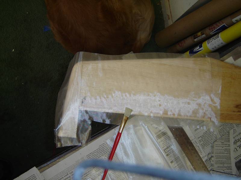Several reasons,I must say-- :for example durability.The TTIV was designed for a tuned pipe which added weight aft of the C/G where as my build is with a 91 FX with stock or custom muffler adding directly to weight of the nose. Second if I do it right .06OZ glass applied thinned,excess soaked up with a paper towel and then givin a second coat of epoxy quickly squeezed off using playing cards or the like leaves you with a sealed and strengthened structure ready for film covering or a couple light coats of paint.