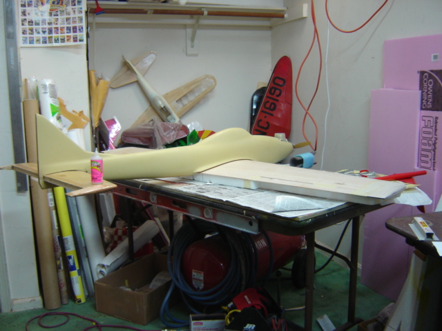 The wings are to be joined next so I sat the fuselage on the wing I love the lines and simplicity of it my kind of "sport airplane."
