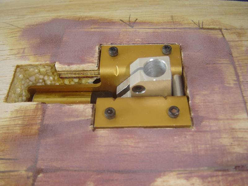 I AGAIN applied several more "skimcoats" consisting of Z Poxy finish resin and brown phenelioc 'micro balloons,mixed till it has the consistancy of regular bondo.. Well my hinges arrived in the mail so I can finish hinge the control surfaces and then finish the retract intallation,not sure which units both are the same one has been on the market and the other recently come on the market.[8D]