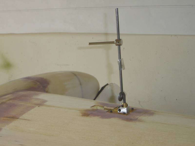First I glassed the wing trailing edges where they accommodate the ailerons leading edge. Next the left and right aileron servos are fitted fitted ,with push rods being set up (will probably use Titanium links,)to connect the servo to the Ail control horn;since the ailerons are of foam with balsa sheet skin I installed 1/2'dowels as hard points and drilled them for the control arm first before gluing in place.