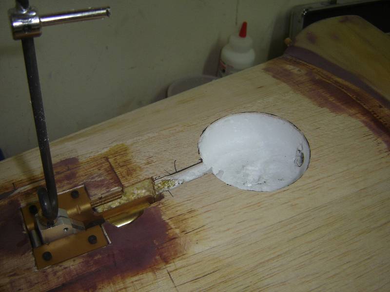This wire was bent into a rectangle the exact width of my wells. Once I trimmed the skin away from my cutout pattern on the wing panels, I simply melted my way down to the proper depth and twisted the rectangle around in a full circle. In order not to melt too deep, I placed ply stops across the rectangle at my desired depth. This way, I wouldn't have to worry as I twisted the gun and wire around. I did this on my Kaos 90 and it produced terrific results.