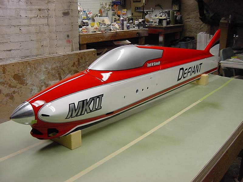 Greg and Tom, I don't know at this time if I'll make kits or not. It will depend on how the plane flys and more importantly if I can produce kit components up to the standards we all desire. This fuselage was not to good, but I know what I did wrong (I hot box dried the fuselage). This caused some defects in the kevlar that had to be addressed in the finish stage. The fuse started heavy at 33oz, mainly because I got carried away with primer in the mold. I used way to much and sanded a lot off. The plane finished comes to 10 pounds 12oz. (good windy weather plane)