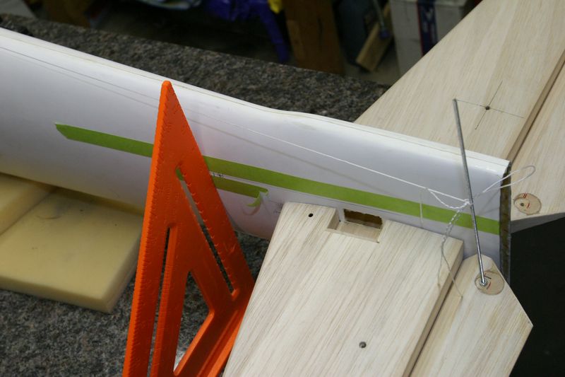 The exit holes came out slightly further forward than I would have liked, but it works just fine. Just for peace of mind I added a 1/8" CF rod over top of the .007 rod between the exit hole and the elevator horn since it was about 10 or so inches.