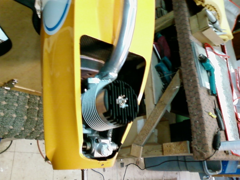 The carb is low enough to be outta the way (unless it rotates more than 45 degrees [X(]) and the header has enough clearence. It doesn't move that much. You see that the motor is actually a bit to the left (from front) and can be rotated a bit right the help with that.
