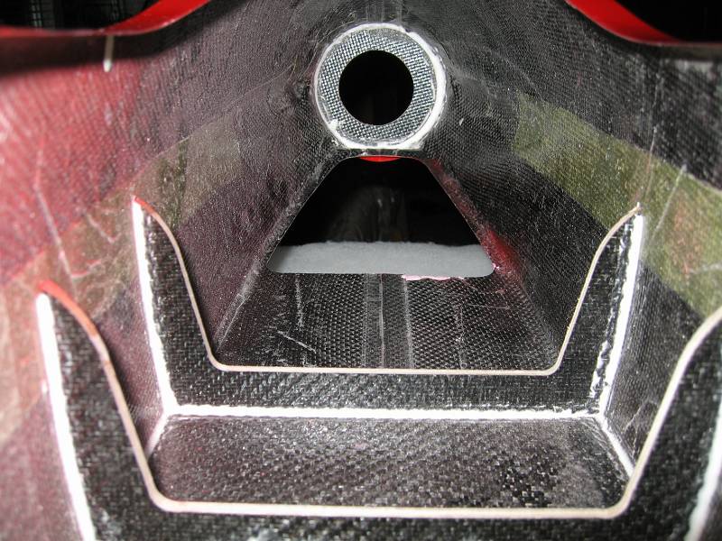 Once the pipe tunnel is installed it removes and transfers quite a bit of stress from that area. Also the part of the fuse that tapers back from the landing gear reinforcement is removed when using a 2 cycle pipe, so, additional carbon fiber in that area would be useless because it would be removed anyway.