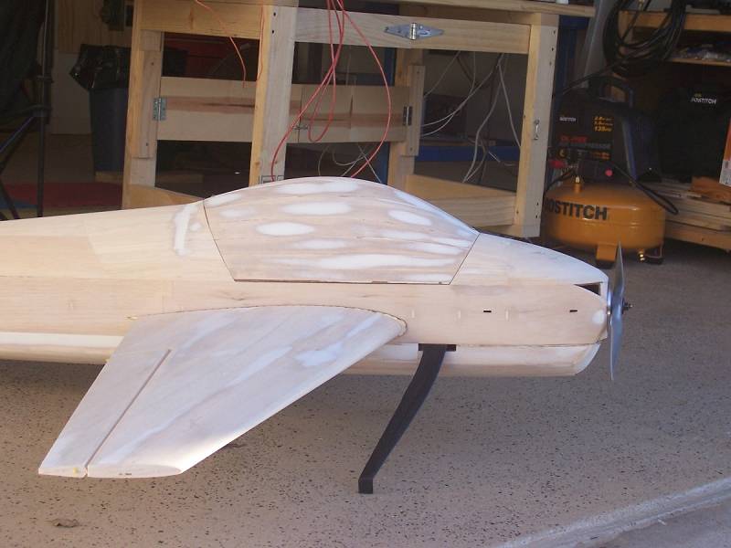 You may notice the top line profile along the canopy and down to the nose is bit higher than usual. I wanted to try this new shape...about 1-1/2" higher at the front canopy former...we'll see how it flys sometime this Spring.