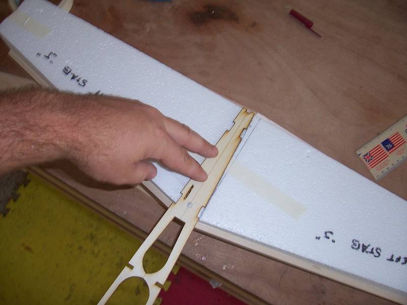 There will be another cut required on the stabs before the root ribs can be added. The root must be cut at an angle to match the fuse sides near the rudder post.