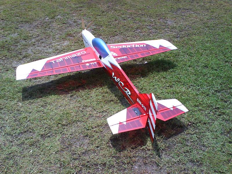 here are some pics of a fellow flyer's (frederick of singapore hobby) new plane, the Seduction WCR made by OKmodel. it's basically a balsa constructed plane which is designed around the seduction line of airframes (wildstyle, freestyle, streamline, etc). the plane is powered by Tahmazo's prototype Contra Rotation motor running a 6S lipo pack per motor. propellers are a custom 15x10 for the front and 15x10.2 for the back.