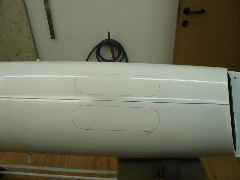by cutting these ventilation holes so rear on the fuselage itself and not like we did on the ballypan on our Oxalys?