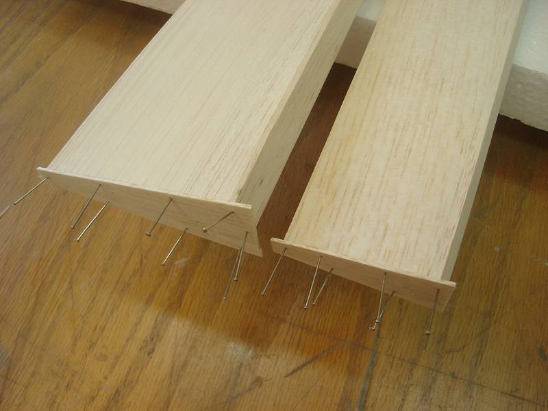 I suggest using the straight angled balsa on the wings/stabs (not on the ailerons/elevators).