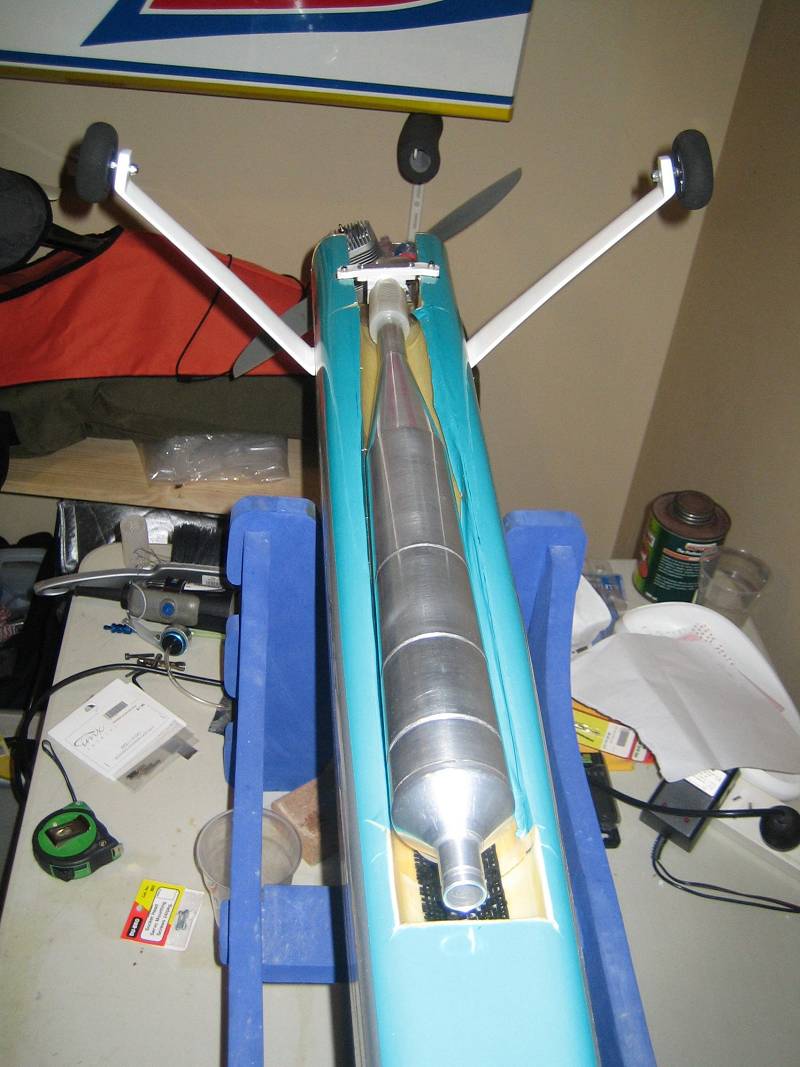 I first mounted the engine inverted and did some engine run-in tests on the ground.