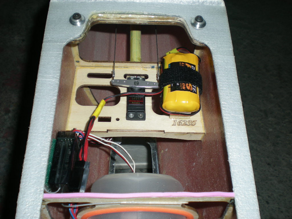 Next week I will take the test flight this way. If needed can move the CG forward by moving the Throttle servo from the inner tray forwards to the Muffler tray or by moving the Batteries which are now placed on a tray under the Canalize opening.