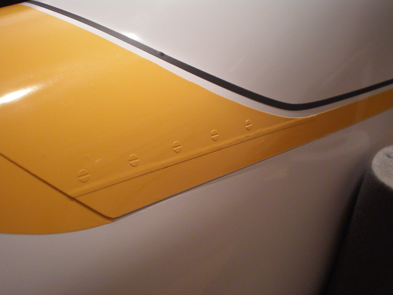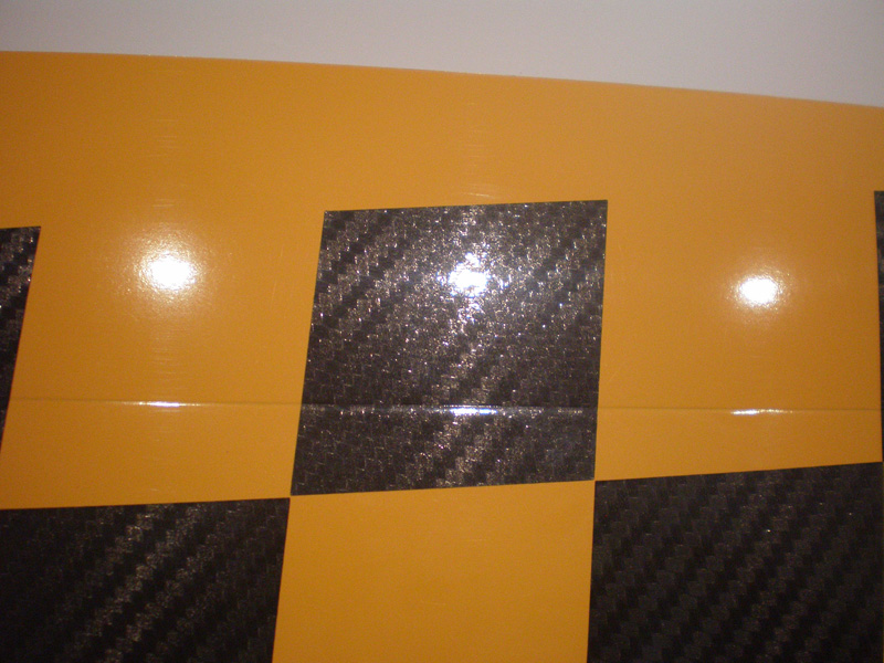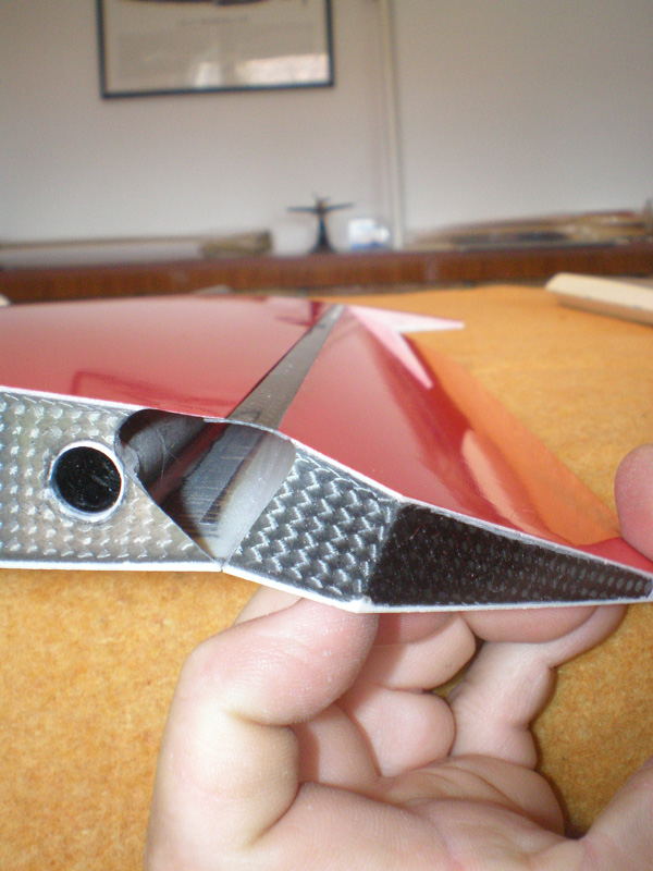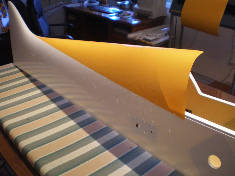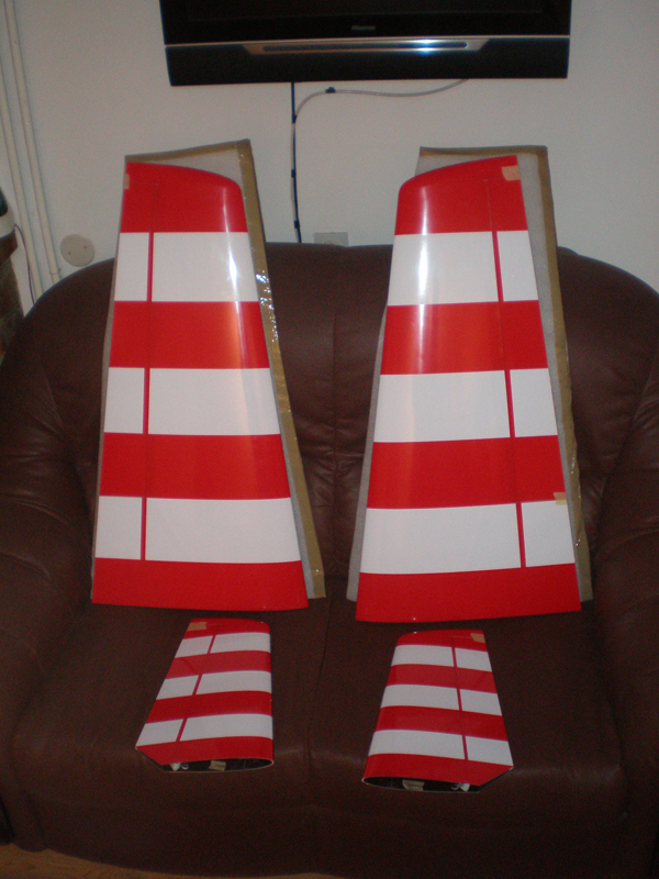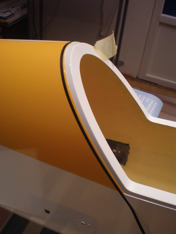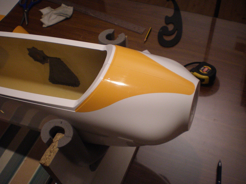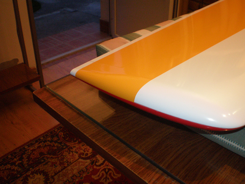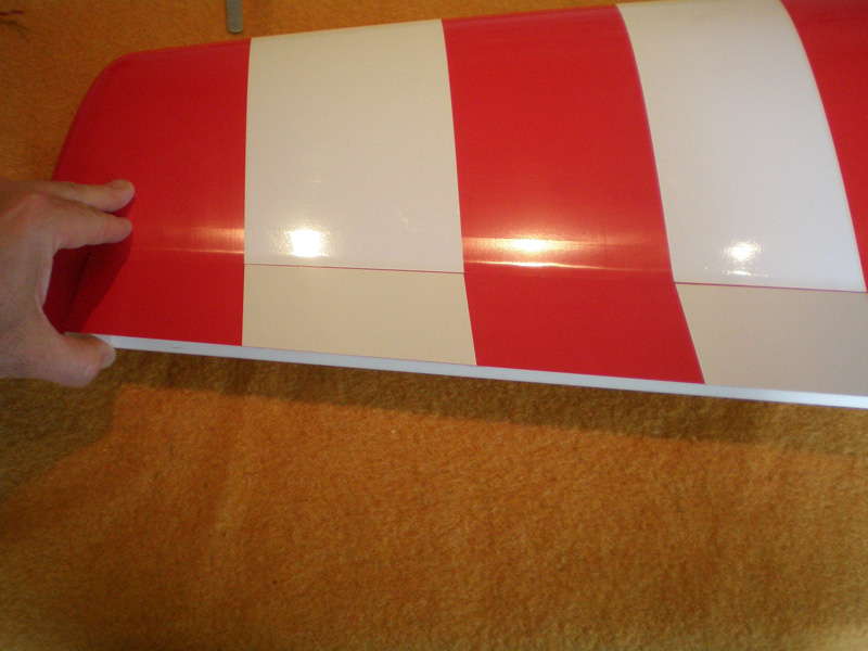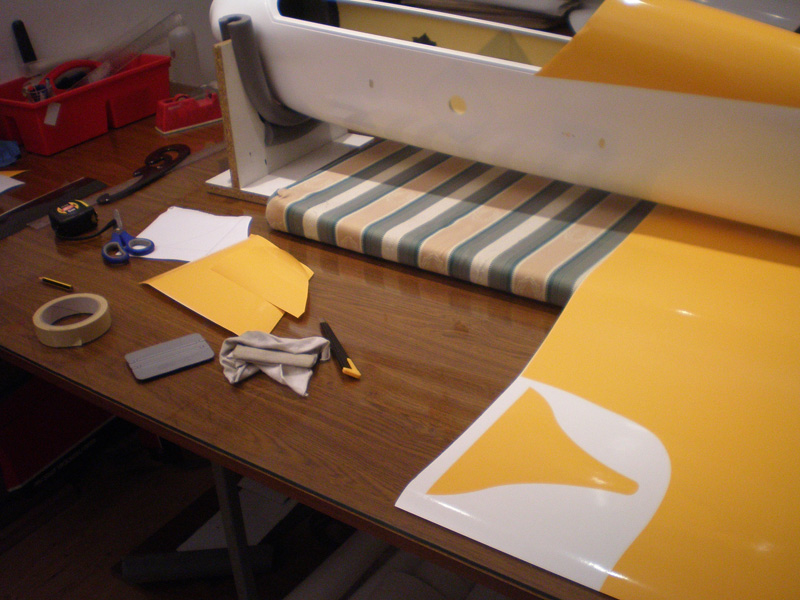 He bought it from Lorenz Modell from Germany. Model was white, and I have job to design and made finish on this model. Model are extremely easy, so painting it wasn't option, because first must add primer, than color, and everything must be paint with clear cote. So many layers will add to much weight, so we decided to made finish with self adhesive foils. Self adhesive foils are grate on flat surfaces but it can't be apply on rounded shapes. So, I must create design which will match with model... On Bravo upper surface and complete fuselage are white, and botom side of wings and elevators are red. My friend have wish to color scheme be totally different on upper and lower side. But before story about color scheme, look few pictures about model... Bravo is last generation in full composite F3A model... Attachment 2236439 Attachment 2236440 Attachment 2236441 Bottom wing side... Attachment 2236442 Attachment 2236443 Trailing edge... Attachment 2236444 Cabin is made from thin carbon... Attachment 2236445 Attachment 2236446 Attachment 2236447 Attachment 2236448 Attachment 2236449 Elevators was made with same technology as wings... Attachment 2236450 Attachment 2236451 Attachment 2236452 Attachment 2236453 Attachment 2236454 Attachment 2236455 Attachment 2236456 Few details about landing gear... Attachment 2236457 Attachment 2236458 Attachment 2236459 Attachment 2236460 Attachment 2236461 Attachment 2236462 Attachment 2236463 Attachment 2236464 And finally fuselage... Attachment 2236465 Attachment 2236466 Attachment 2236467 Attachment 2236468 Attachment 2236469 Attachment 2236470 Attachment 2236471 OK, now when we know how model look, lets start with work. I start working on lower wing side, and apply three white stripes... I use Oracal 641 self adhesive foils. Because wing surface are plastic, very thin and gentle, I use water for applying foil. System is simple, add water on surface, add water on sticky foil side, and aplly foil on surface. Bacause foil is wet, I could position white line very precise on wing... Attachment 2236472 Attachment 2236473 Attachment 2236474 Attachment 2236475 Than I used this little tool, and squeeze out water... Attachment 2236476 Attachment 2236477 Surface are without any bubble... When water dryed I add masking foil in edges which I want cut... Attachment 2236478 Attachment 2236479 Attachment 2236480 Attachment 2236481 On ailerons I must move white line from edge where aileron come inside in the wing. Gap is so small that foil will stuck on the edge... Attachment 2236482 Attachment 2236483 Attachment 2236484 Finally, I add one red stripe on first white line to made all lines same... Attachment 2236485 Attachment 2236486 Attachment 2236487 Than I made this process few more times, and get white lines on bottom sides... Same procedure was for elevators, but for applying white stripes I was not using water... Attachment 2236488 Attachment 2236489 For upper surface I made totally different color scheme. First I draw everything in computer in Corel... I made few proposals, to enable my friend to choose colors, but for me, and for him also, yellow and black was the best combination... Attachment 2236490 I bought yellow foil, and instead off black I take foil like carbon... Attachment 2236491 Attachment 2236492 On white wing side, first I add yellow areas, but before that I put together wings to draw a straight line. For that operation I use very "high tech" tool... Attachment 2236493 Attachment 2236494 Attachment 2236495 Attachment 2236496 Gluing was again with water... Attachment 2236497 Attachment 2236498 Attachment 2236499 Attachment 2236500 Technique was same like on bottom side... Attachment 2236501 Attachment 2236502 Than I apply cubes made from carbon foil... Attachment 2236503 I used transfer foil for this... Attachment 2236504 Attachment 2236505 Attachment 2236506 Attachment 2236507 Attachment 2236508 Than I made and apply lightning shadow, which was again from carbon foil... Attachment 2236509 Attachment 2236510 Attachment 2236511 After that letters and finally red lightning... Attachment 2236512 Attachment 2236513 Attachment 2236514 Attachment 2236515 Attachment 2236516 Attachment 2236517 Same procedures was on elevators... Attachment 2236518 Attachment 2236519 Attachment 2236520 Next was fuselage... Attachment 2236521 Attachment 2236522 First yellow areas... Attachment 2236523 Attachment 2236524 Attachment 2236525 Attachment 2236526 Attachment 2236527 I add black stripe for easier cutting... Attachment 2236528 Attachment 2236529 Attachment 2236532 Than copy - paste everything on other side... Attachment 2236533 Next was front end of the fuselage... I must made paper template... Attachment 2236534 Attachment 2236535 Than I scan it in computer and finally cut on my Roland cutter...... Attachment 2236536 Attachment 2236537 Next step was easy... Attachment 2236538 Attachment 2236539 Than I add yellow and black line on cabine. Yellow line connect front and rear yellow fuselage areas... Attachment 2236540 Attachment 2236541 But, when I add cabin on fuselage I saw that in fron was big white area... Paper templates again... Attachment 2236542 Attachment 2236543 Attachment 2236544 ...little cutting, little trimming and... Attachment 2236545 Attachment 2236546 Attachment 2236547 Attachment 2236548 On the foil lap I add "warbird" details - screws... Attachment 2236549 Next steps was to add letters, lightning with shadow, and all other details... I always made letters first on paper... Attachment 2236550 Attachment 2236551 Attachment 2236552 Attachment 2236553 Attachment 2236554 But, when I put wings on, I saw that right elevator is to much color full for my taste, so I change design... Attachment 2236555 Attachment 2236556 Attachment 2236557 Attachment 2236558 Last touch was adding authors logo... Attachment 2236559 And finally Bravo in full shine... Attachment 2236560 Attachment 2236561 Attachment 2236562 Attachment 2236563 Attachment 2236564 Attachment 2236565 At