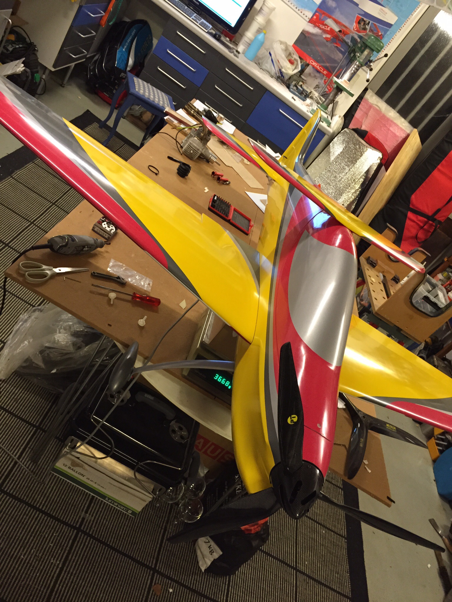 I'm still working slowly ahead on this one ......Have the motor and propeller and frequency converter in place. And the first set of batteries ;). http://www.rcuniverse.com/forum/atta...mentid=2036537