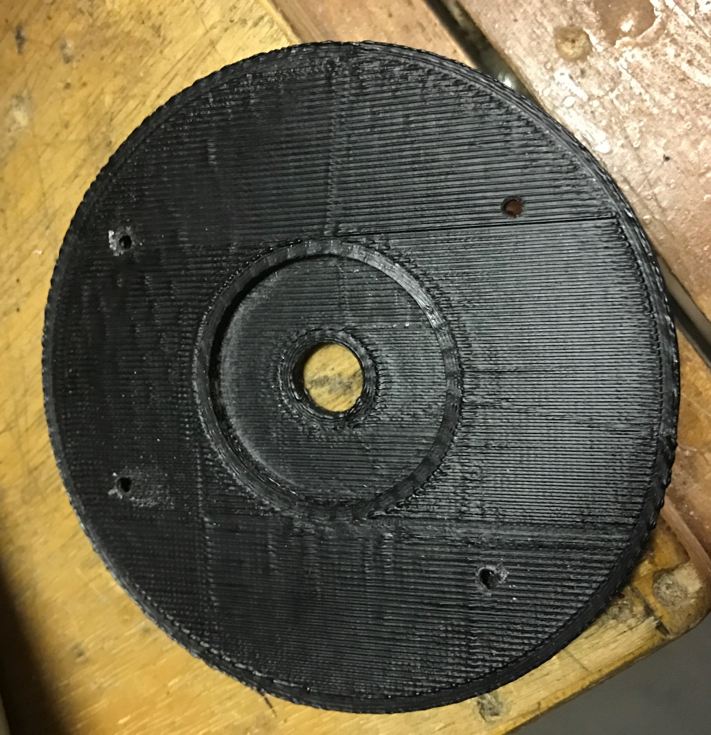 Now for the gear. I drew a line between the two closest holes for the gear bolts. Then measured the distance inward from each hole I wanted to move the gear. I marked the location and drilled the new hole. I installed the gear using one bolt and the new hole location. This will allow you to aligned the gear and marked the location for the remaining holes. I then set the blind nuts and install the gear. It's easier than it looks :) |
