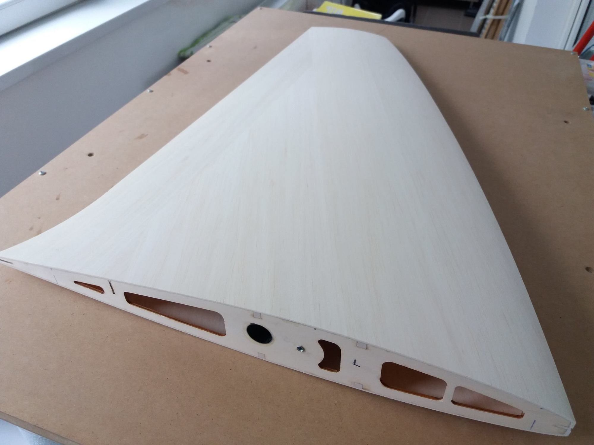 No problem with yours wings. Mine have hundreds flights and snaps, plane is equiped with Yamada. Picture shows wing before balsa 2 mm light sheeting. frame 1 and 5 are in light plywood. Flexural strength is given by the carbon tube and not by sleeve in the wing. So it is no necessary to reinforce by adding balsa beam. Claudeclaude https://cimg6.ibsrv.net/gimg/www.rcu...4e367d9949.jpg |