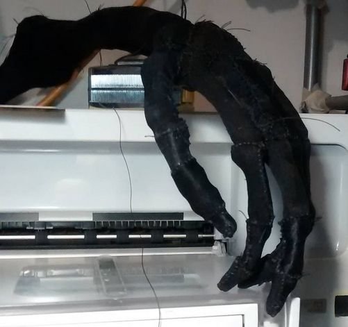 I figured out a robust way to make the extension cord for finger extension using the bracelet cord and a fishing crimp sleeve. The idea is to crimp the two ends of a folded in half strip of bracelet cord and this way both ends can be sewn down into the fabric without any gluing which could potentially fail or be a weak point. I am planning to use this in place of the tension spring style finger extension setup.