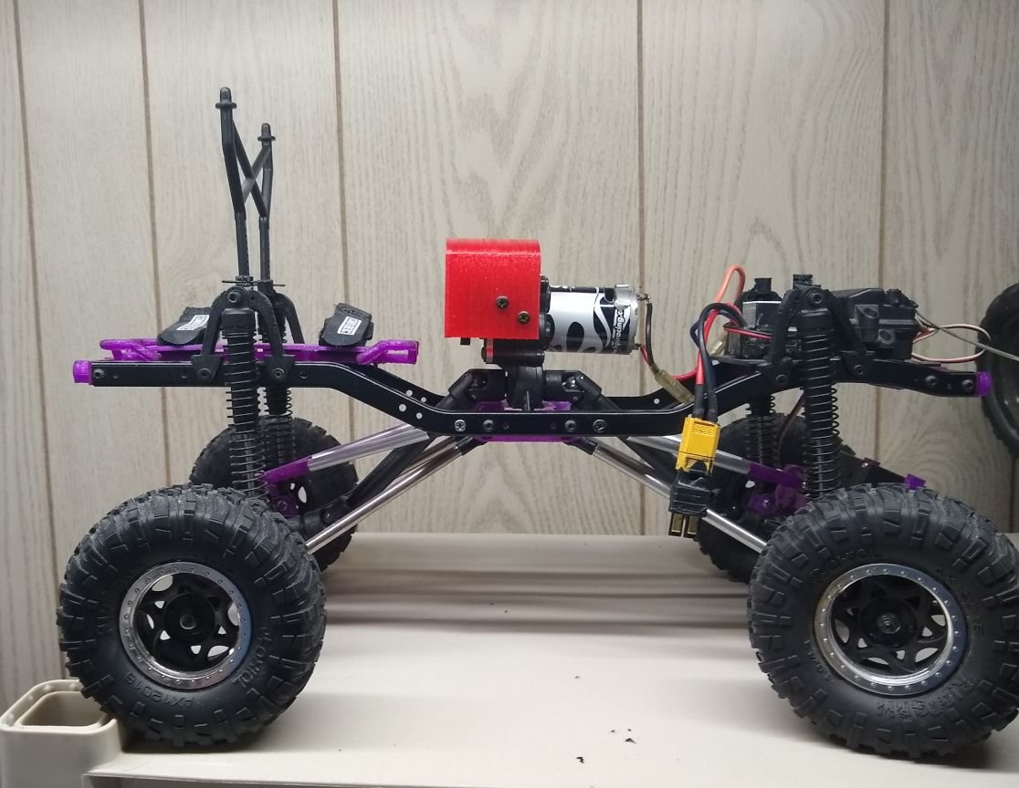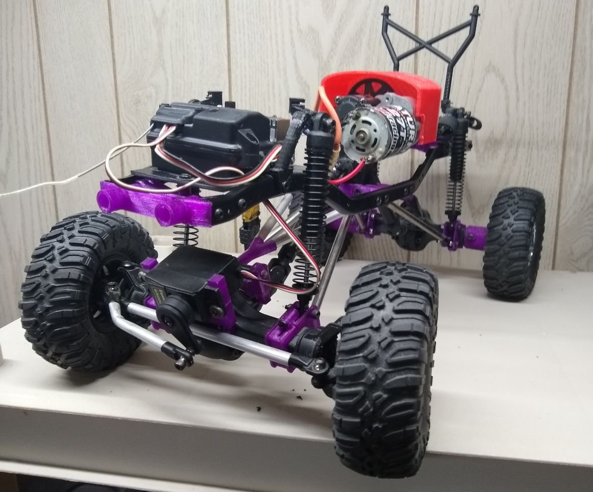 All in all so far I'm happy with how it went I do wish I got the roof smoother as you can see some 3d printed layer lines in it, but I pretty much smoothed out where the 2 parts connected in the back. I might eventually get a little softer spring for it as the ones that it has I think are for a buggy or something, and are a little hard for crawling.