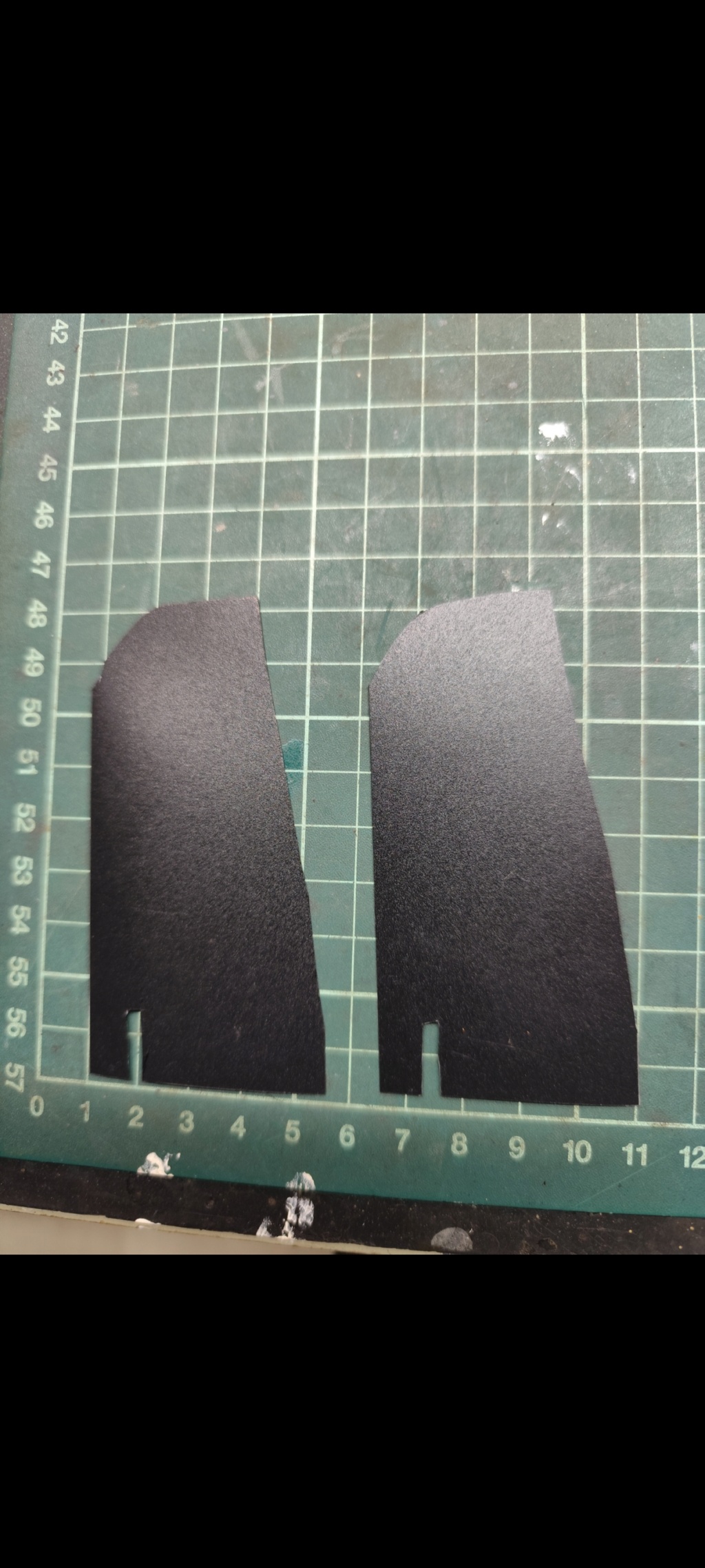 And one of the missing details is to cover the front of the wheel arch. I'll do this with a cardboard folder. plastic