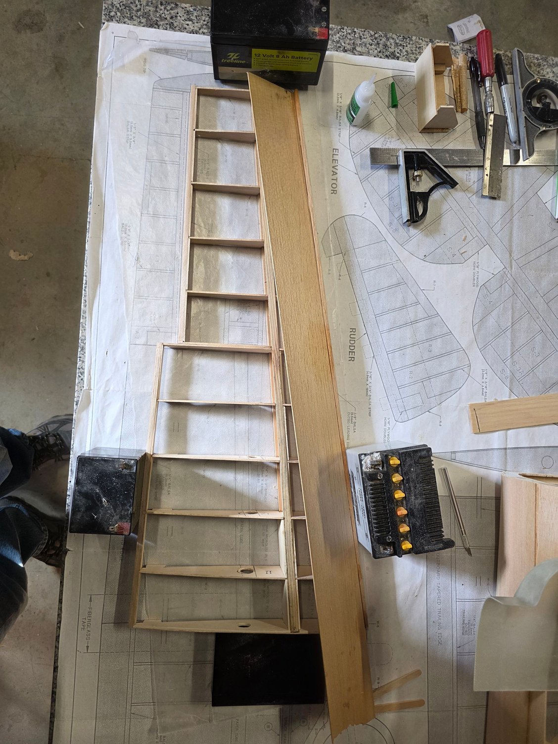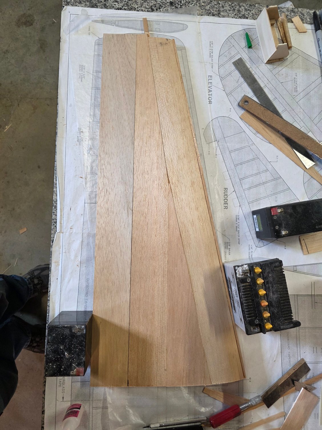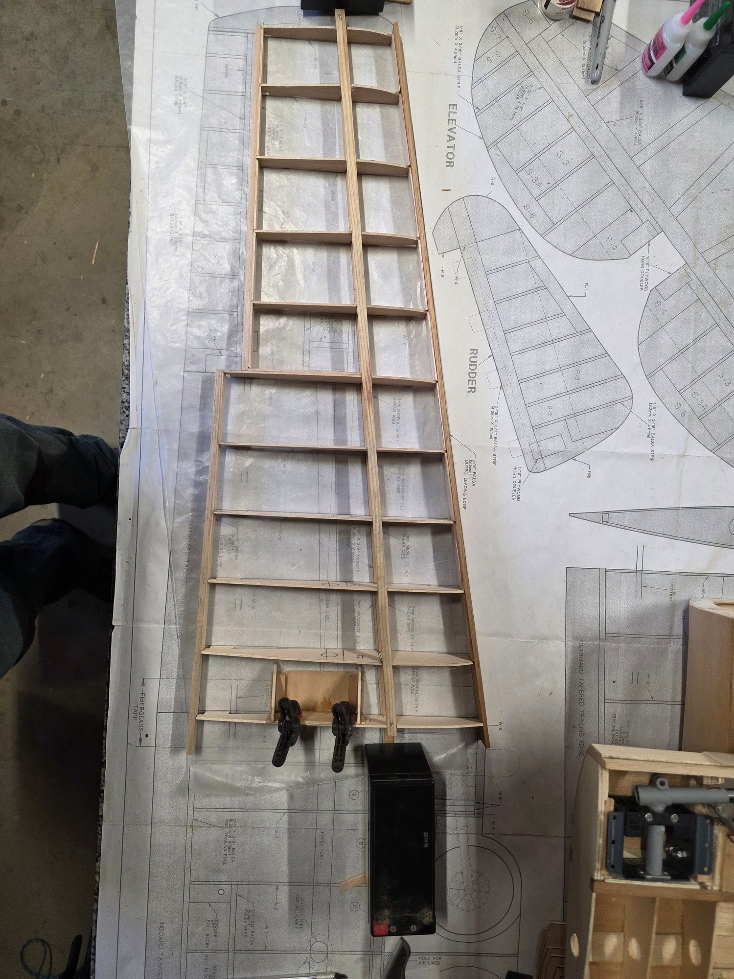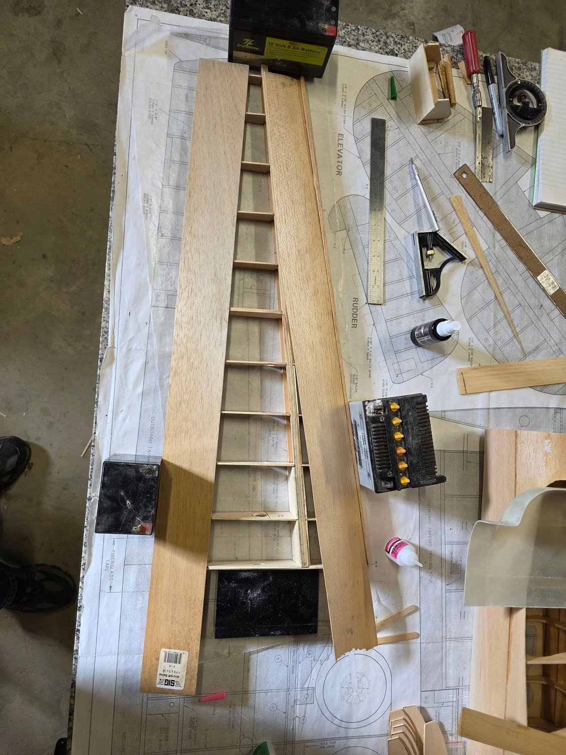 Well after a good days worth of roughing in flaps and getting the wing all laid up and glued here are the photos,