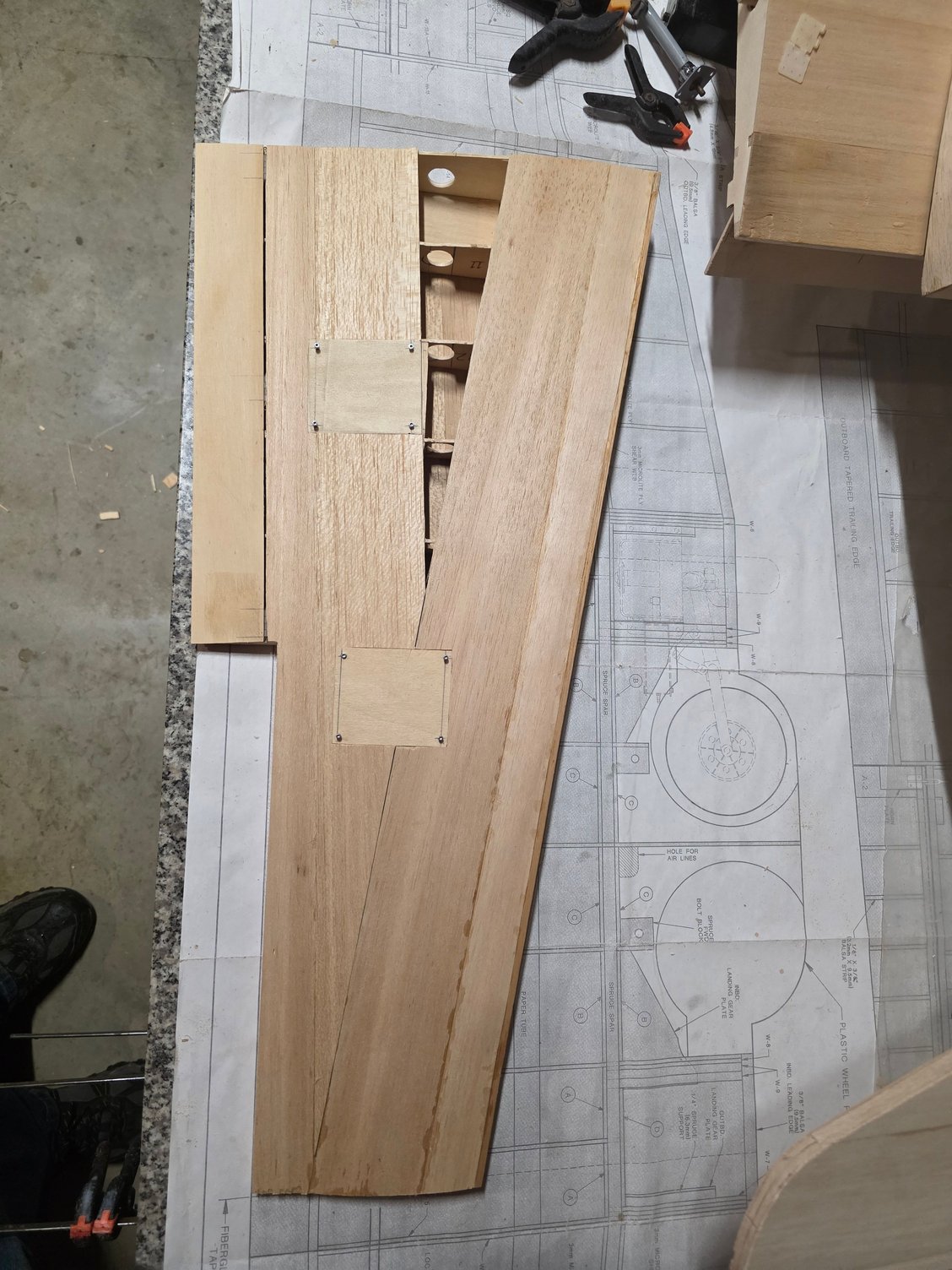 fitting the outboard wing and lining up the holes for a wing tube.