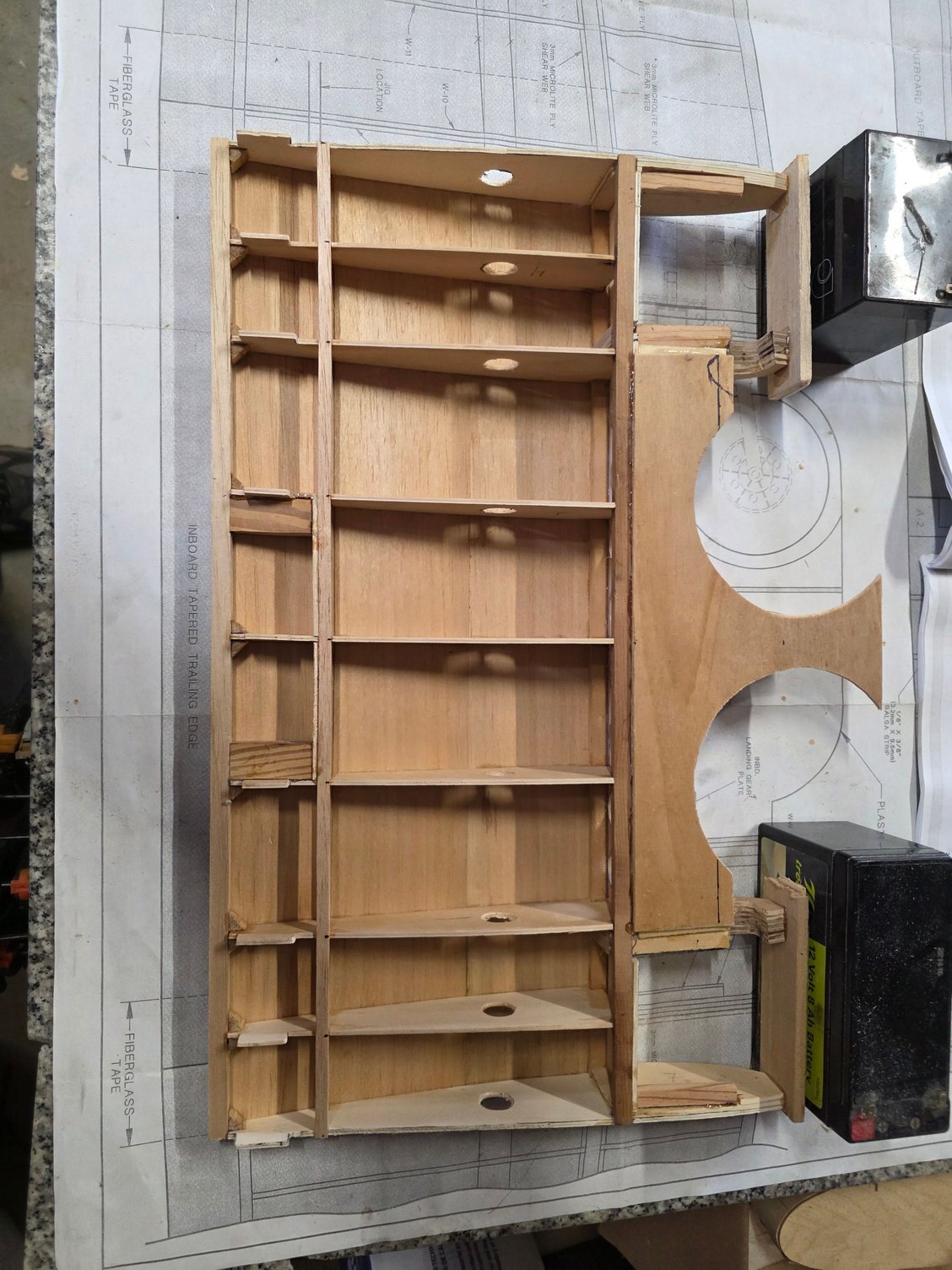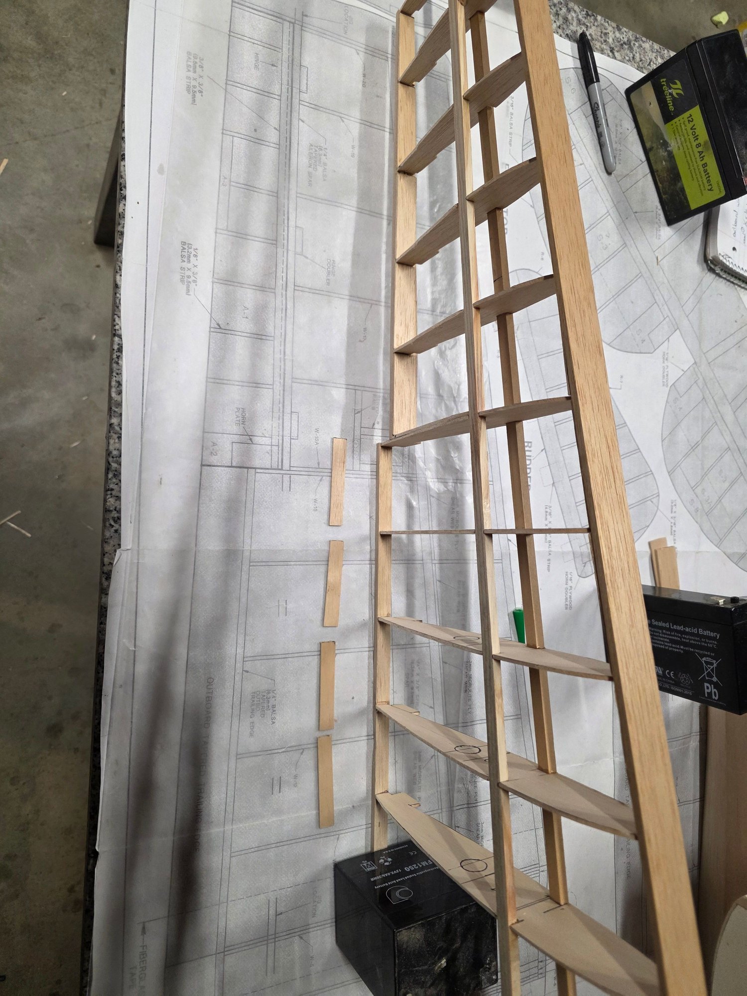 up to closing the wing completely up. I'm waiting on a carbon fiber tube for the wing tube fit into the outboard section before i finish closing it up. I had to run to the hobby store to replenish my stock of ply, hardwood sticks and sheets of balsa.