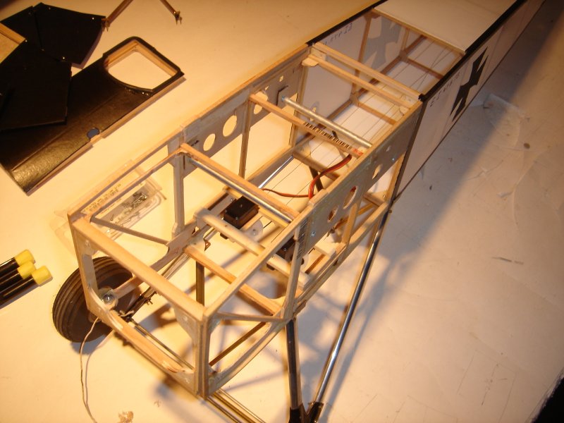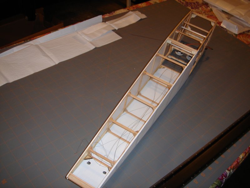 1) showing the servos in the wings and uper pylon with eyebolts.