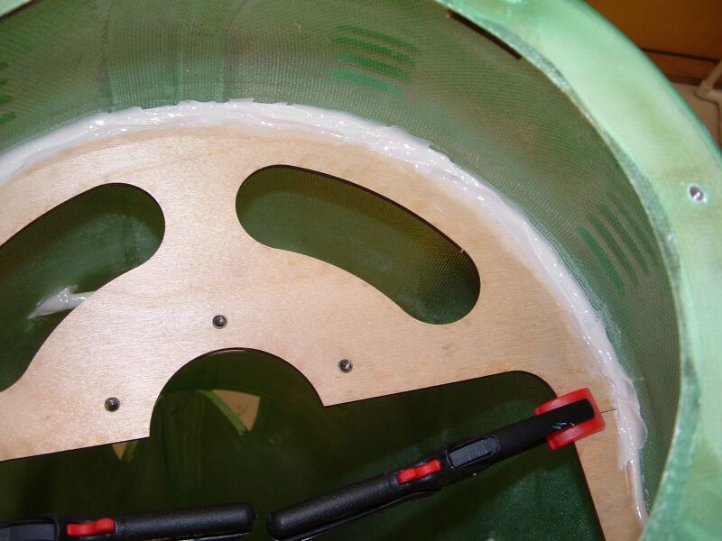 The aluminum extrusion pieces are first epoxied to the formers then drilled and screwed for reinforcement to the formers.