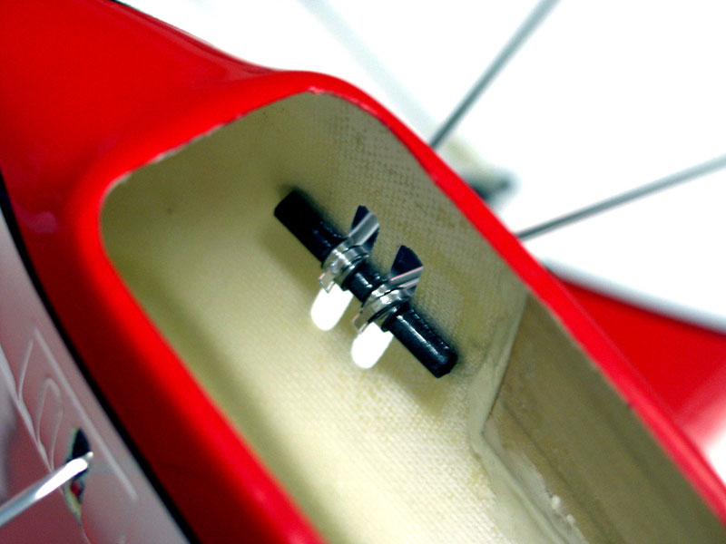 Next is to plan for the stab flying wires. These are functional. The 44 racer has a different layout for the stab wires in that the two wires come off a single anchoring point on the vertical stab. I'll take an appropriate thickness of 7/8 dowel and aeropoxy it inside the fin. Drill a hole for a bolt and then bolt both the Lt and Rt anchoring plates. For the bottom anchoring point I'll try to do something similar. Any other ideas welcome.