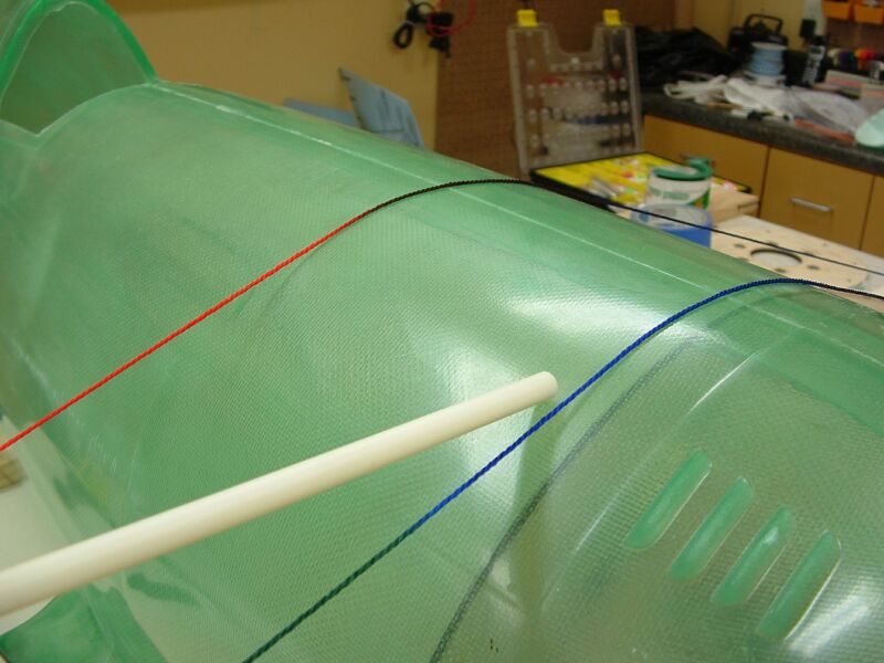 I've been toying with several options for flying wires. From the real thing to "faux" wires. The number of wires needed and the time to assemble and disassemble at the field eliminated real wires. I read a review on the GP BeeGee here on RCU and adding flying wires was shown http://www.rcuniverse.com/magazine/a...article_id=351