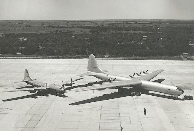 The first one shows a huge B-29 (left) next to a B-36 (right). I have stood next to a B-29 and it is BIG.