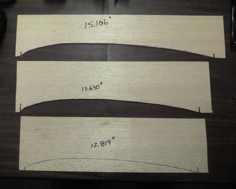 Working on the top side of the wing I started shaping the solid piece of the trailing edge. When you build a kitted plane, all of the parts are cut out for you so there usually isn't much shaping required. When I got to the trailing edge of the wing I realized that I needed a guide to help me get it right. So I opened up the CAD drawings and created drawings that showed the cross section of the wing at certain locations. I will add these to the design files. I used the drawings to create templates.