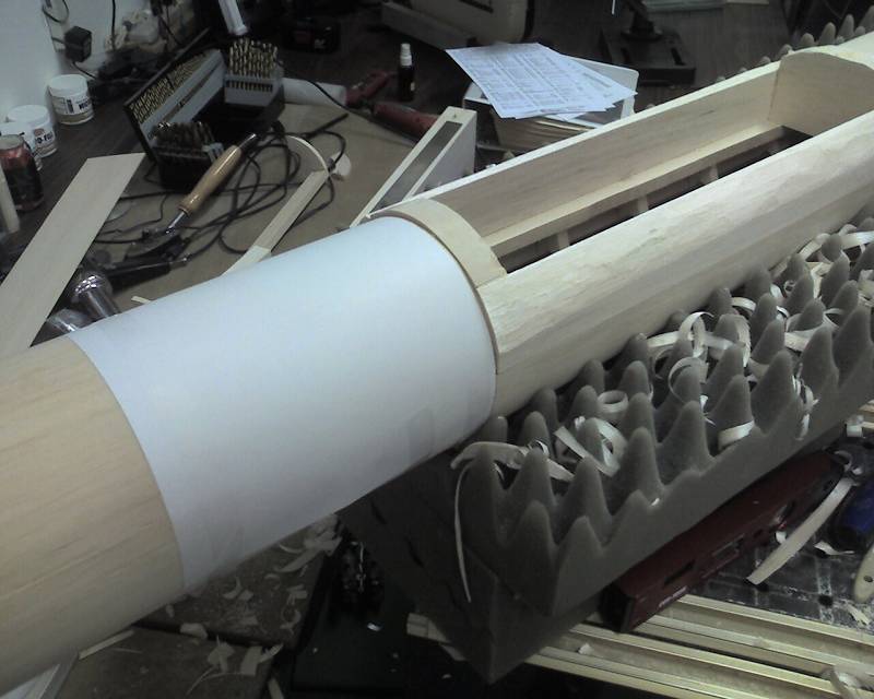 I began to shape these pieces to match the contour of the fuselage as shown in the fourth photo.