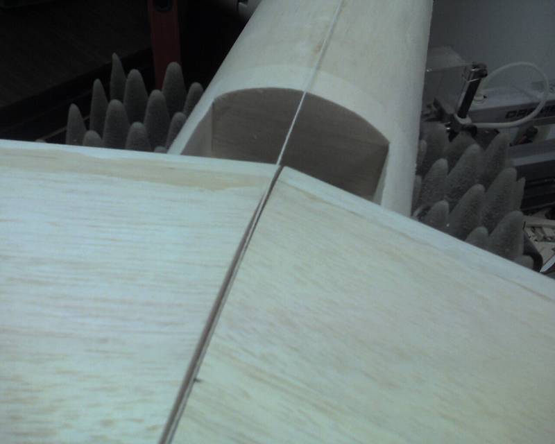 Here is a photo of the wing sitting on the roughly carved wing mount. Even though I had to rework this area, I was pleased to have a larger surface area for wing to rest on. I still plan to add more support to the bottom side of the wing.
