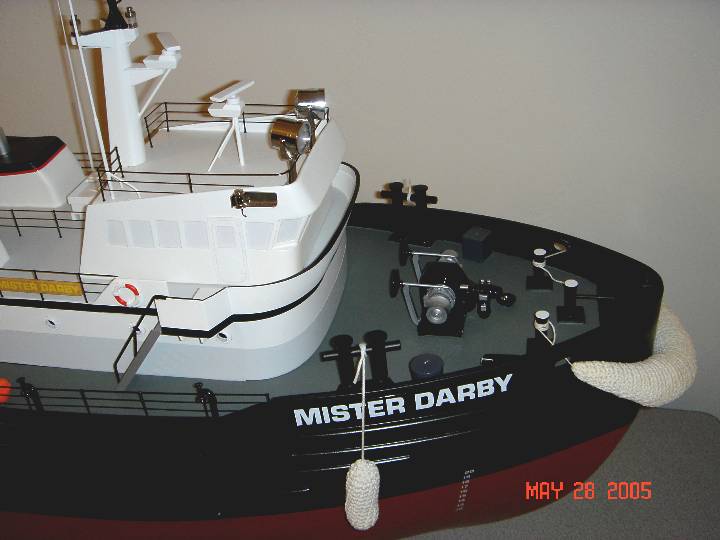 The windows in the "afloat" pictures are outlined in black with a 5mm permanent marker. I don't think the outlining idea is working for me. I made the pilothouse assembly removable for reasons such as this and to replace the light bulb should it ever blow. I plan on trying to locate some "smoked acetate" or something similar to replace all the windows. These scale models are never truly finished but instead a continual work in progress.