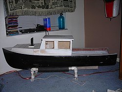 hey guys i have a new project at hand and was looking for building tips and info on the boat. plus i'd like to know were to pick up some parts or maybe how to build somethings. well i don't know whos made the hull but i'm third owner. so i'm going to strip alot of it out and put the transom back to the height it should be at it was cut to low. the boat looks like a lobster boat it is 48" long by 16" wide and set up for gas i'd like to do it up like a real lobster boat so i spent some time online looking at lobster boats i have a few ideas on some of the wood working i just have to see if my tools will stay running long enough to finish it's old stuff. still thinking about colors but i had some ideas i'd like to make up the rubber bumpers the orange one what do you all think i'd like to hear from you all and see somethings you have done. has anyone seen one this big or have done one this big please let me know any info would be great thanks kyle here is a pic of how it is now [img][/img]