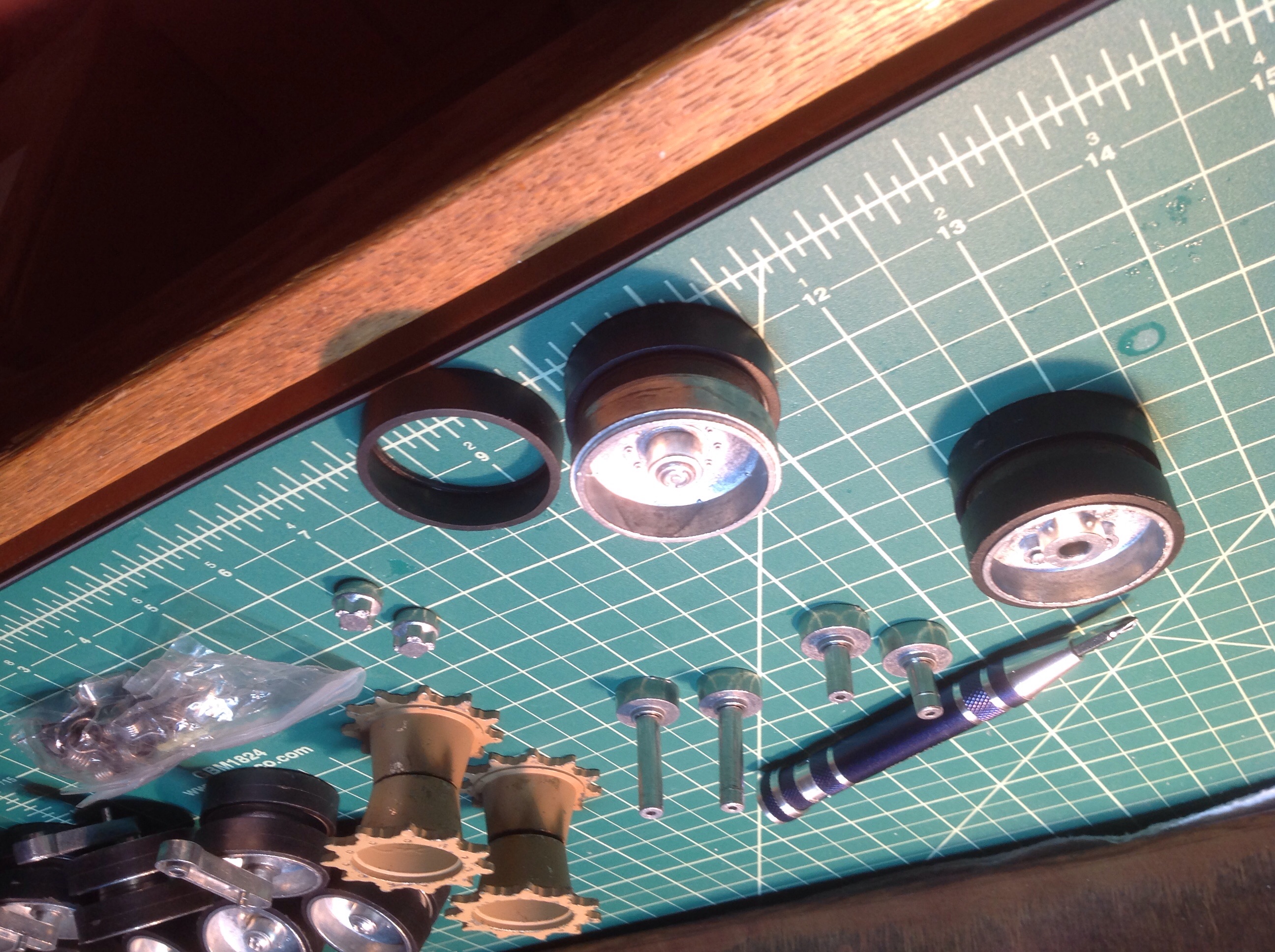 The one wheel I showed dissassembled is an Idler, they are grouped with the sprockets and Return Rollers (Silver Studs) in my photos.