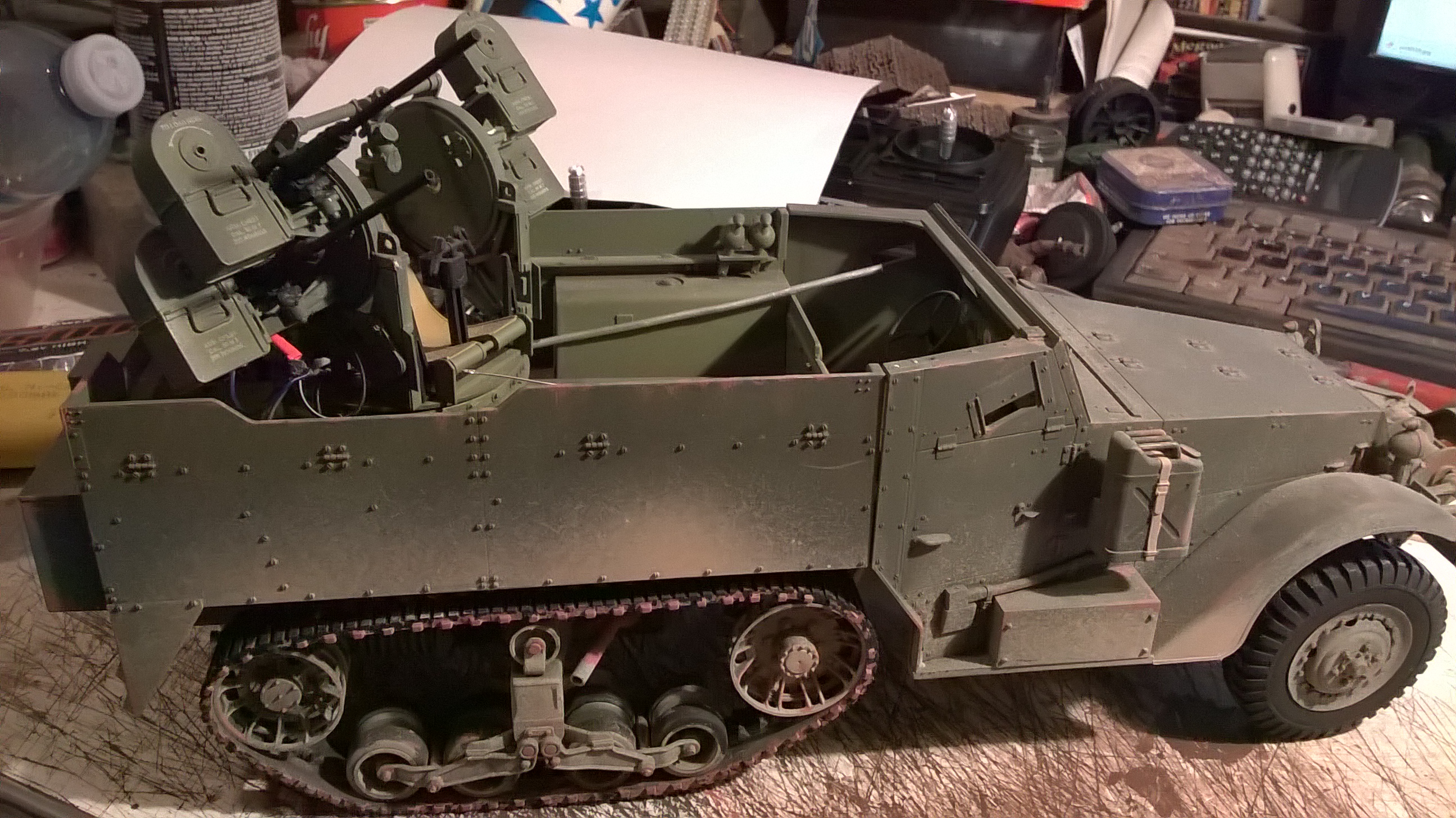 i'm still working on my Half track i have 2 of the four guns fixed, 2 more to go