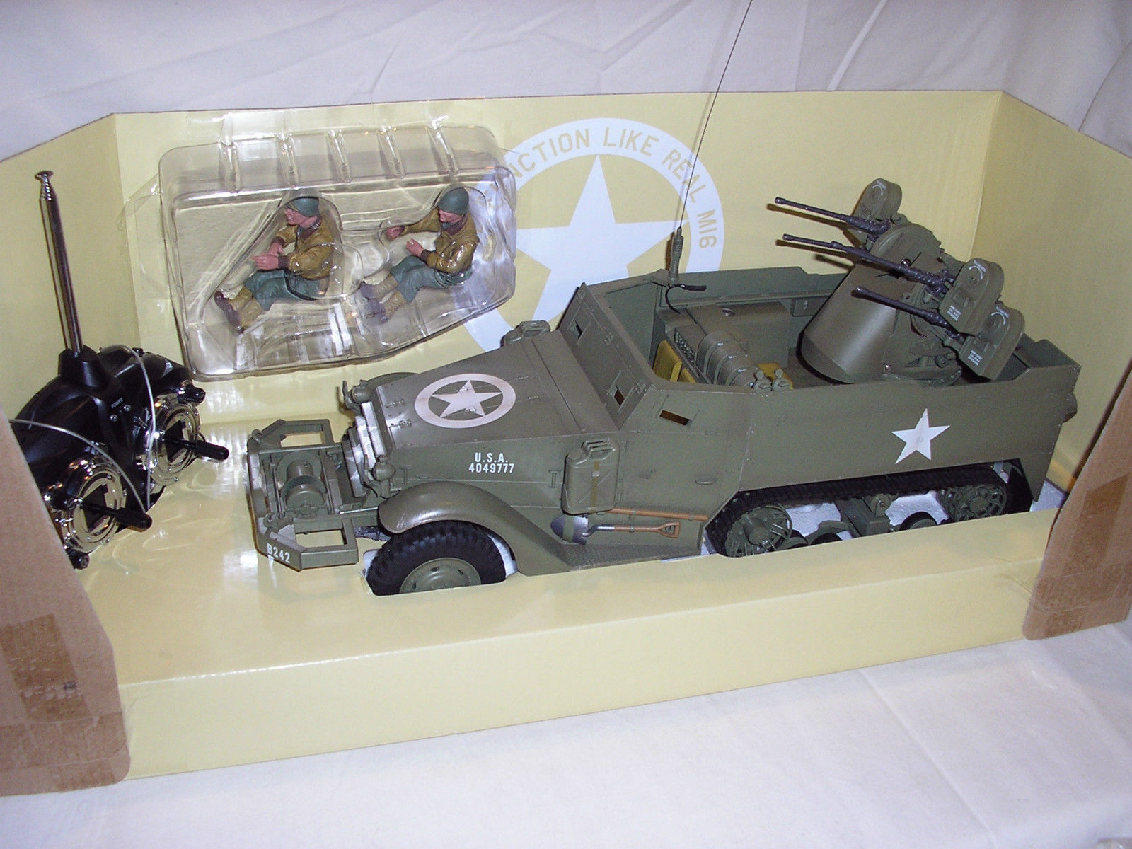 I hand test and modify each halftrack to make sure you get a perfect model. I also make a video of every halftrack I upgrade and sell. https://www.youtube.com/watch?v=MHEoGdwOZnw This way you know it is perfect. The two figures are nicely detailed, well painted with very high quality. And add great value to the Halftrack package which is ready to run and includes a 5 channel transmitter. https://www.youtube.com/watch?v=0zC9roxoNjA