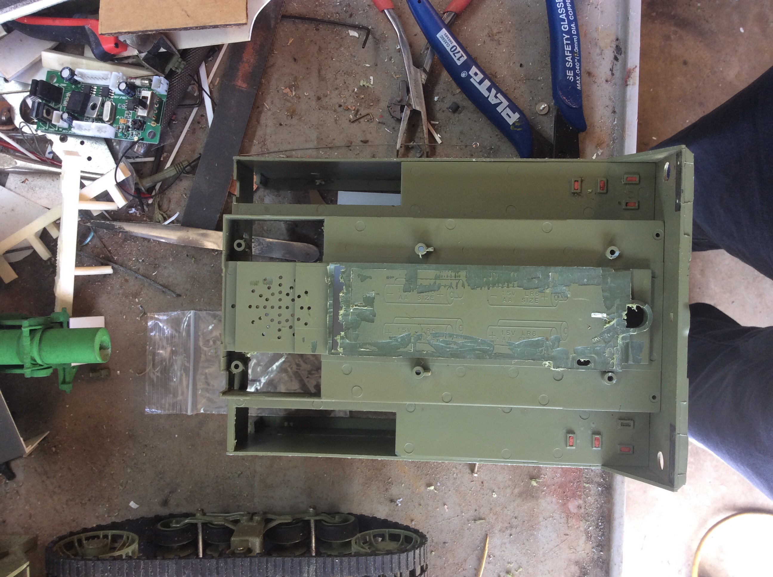 i cut out the fuel tanks up front and even the floor around the speaker. Not sure if I went to far since the frame actually sticks up through the floor a bit and I didnt know that.