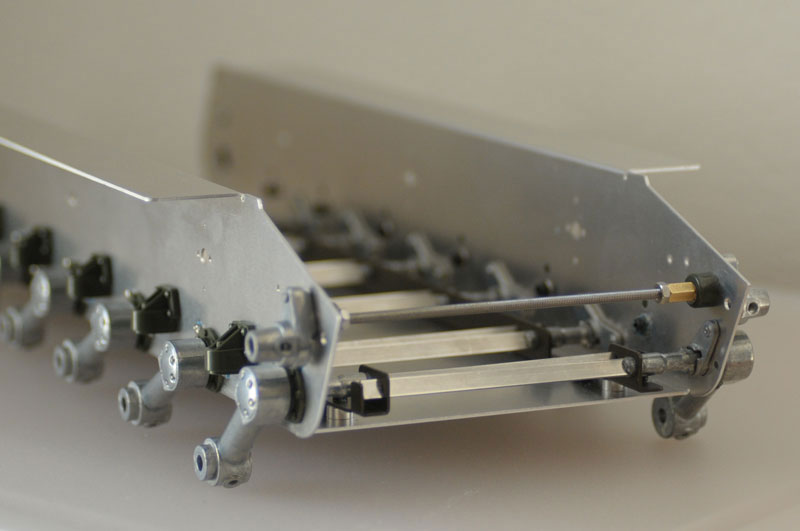 Bill, I recommend a turnbuckle or metal bar to go between the return idler mounts on both sides up front. The thickness of the hull here is no different from elsewhere, yet it has to withstand a lot more stress, carrying the track on their return run, as well as bearing the brunt of collisions with rocks and terrain. A long metric threaded shaft and a few nuts would do the trick bracing up the front by tying both sides together, kind of like the solution that Impact created for the KV-1 (you can't use this plug-and-play as the hull widths are different between the KV and the JS though), this picture I borrowed from Pcomm from a thread from another forum.