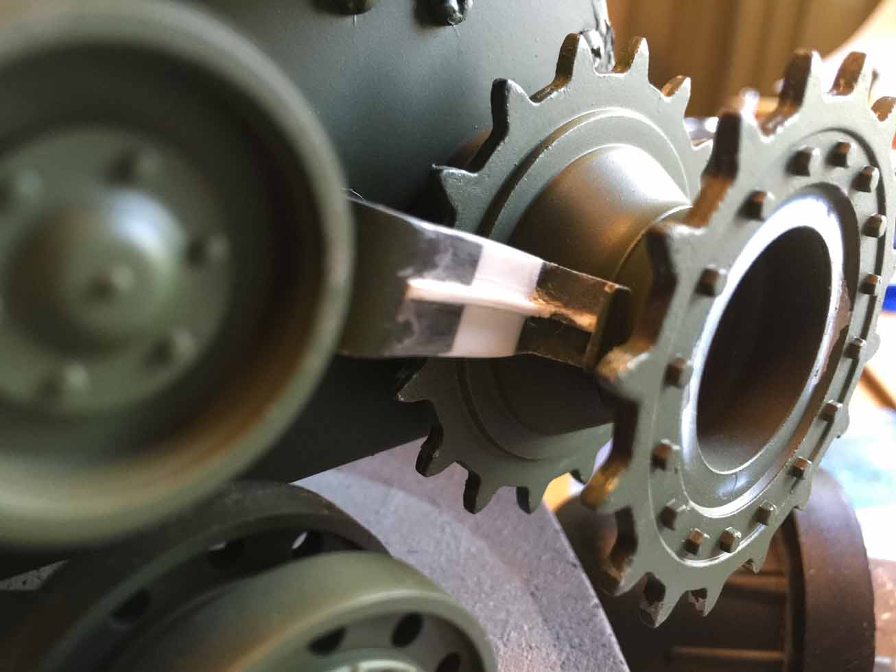 Some Aber details. And I have scratch-built the fender supports to make them a lot thinner than the stock Tamiya ones. I used 0.5mm plasticard. And then placed individual bolts/nuts where needed.
