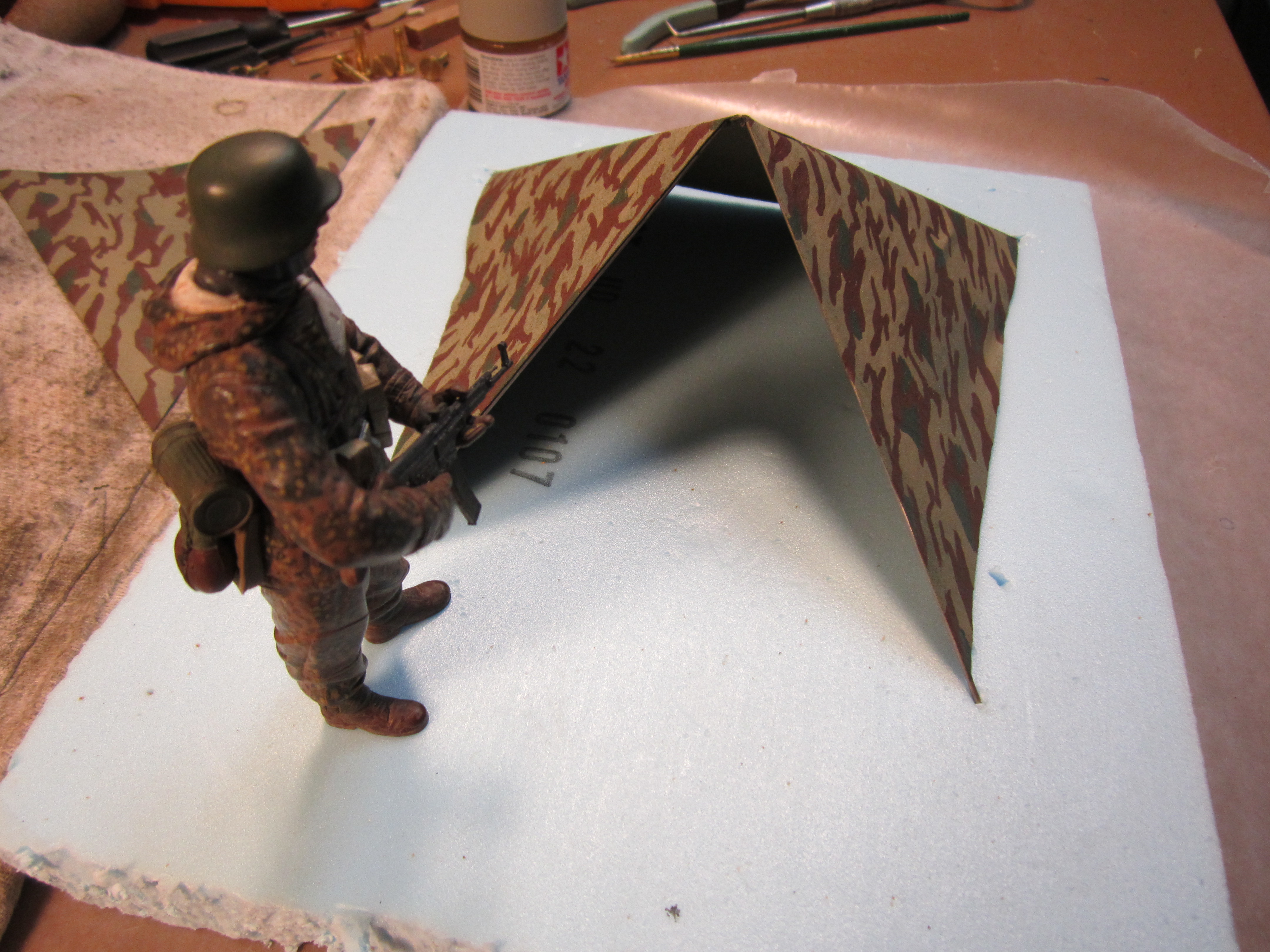 I build all sorts of tank related things… I think I possess the only 1/16 scale WW2 Zeltbahns in the world. I built them myself from scratch as props for tank pictures.