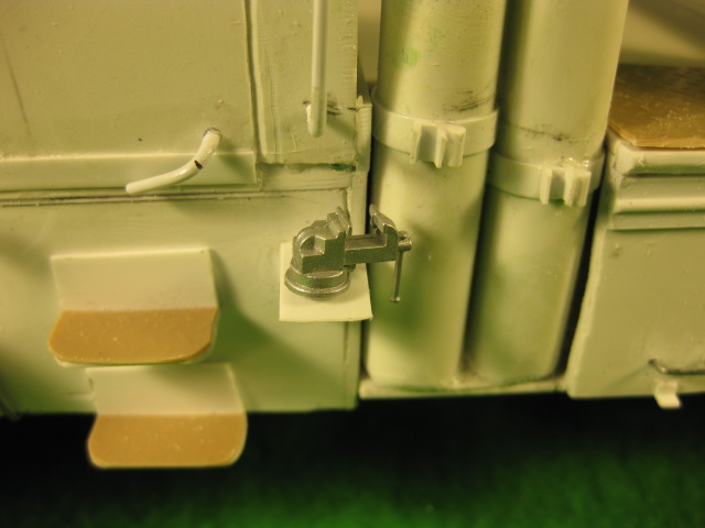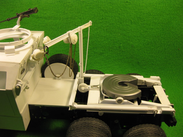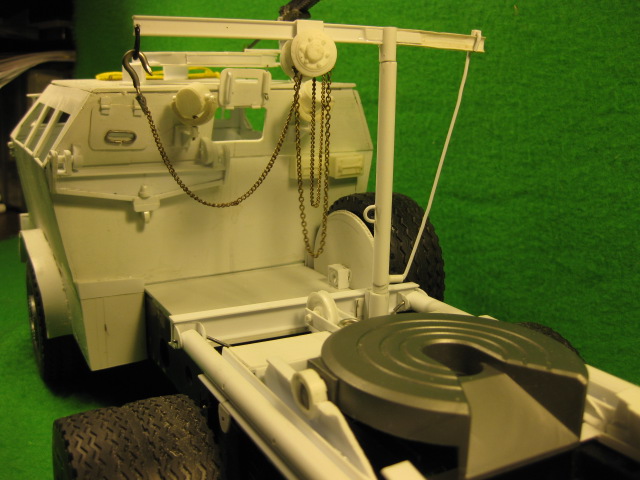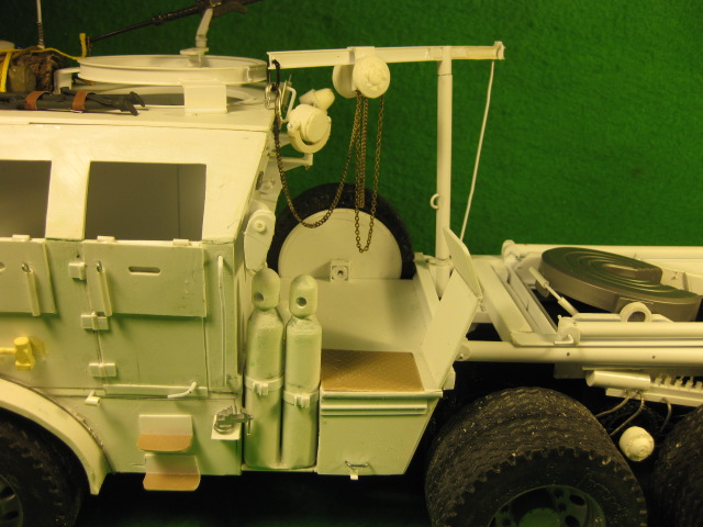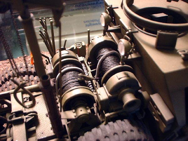 While I was researching for interior photos, I ran across some photos of battle damaged Dragon Wagons. I saw a picture of an M26 with winches that had been hit by heavy machinegun fire. At this point a brilliant idea exploded in my brain. And just by a happy coincidence, my good buddy Jim Beam had stopped by that afternoon and he agreed that the photo was a great solution to my problem. Jim always encourages and inspires me to "Be all that I can be" and "Just do it". Or maybe it was somebody else, that's not the point here.