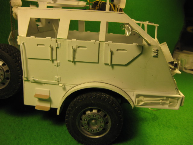 Slowly but surely I'm making progress. I got the sides and some more on the back half of this buggy done, and now I get to do the rear winches and stuff. I started to make an interior, but since that will not be seen very well I ain't gonna spend a whole lot of time on liitle details. So far so good.