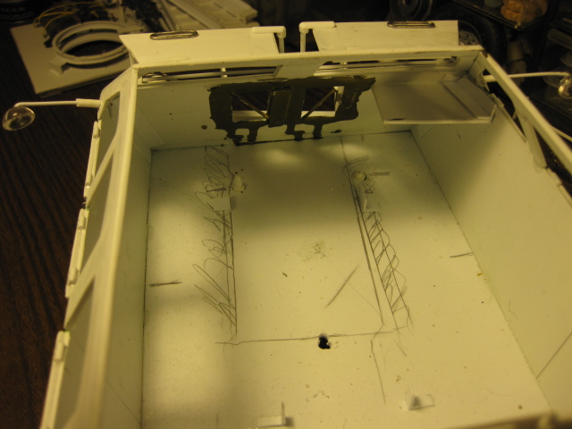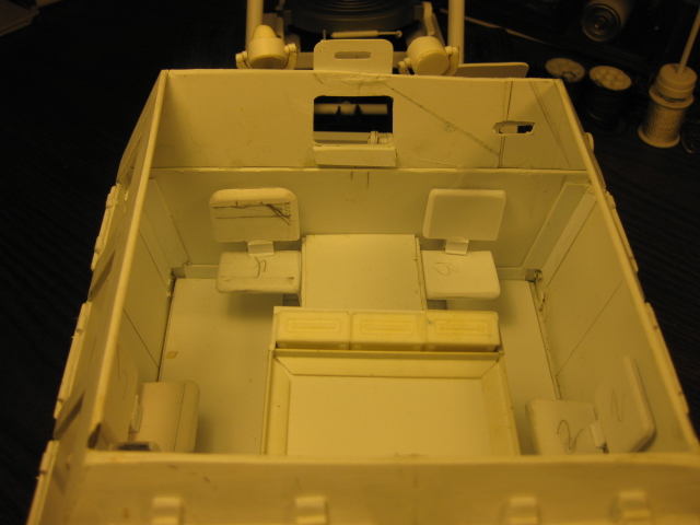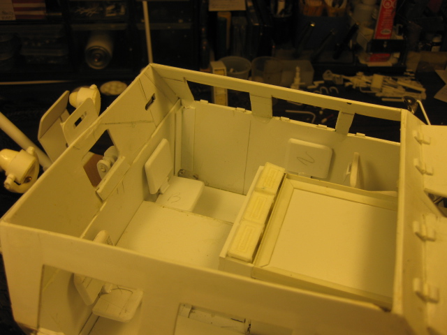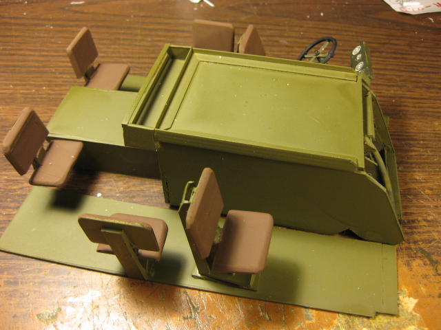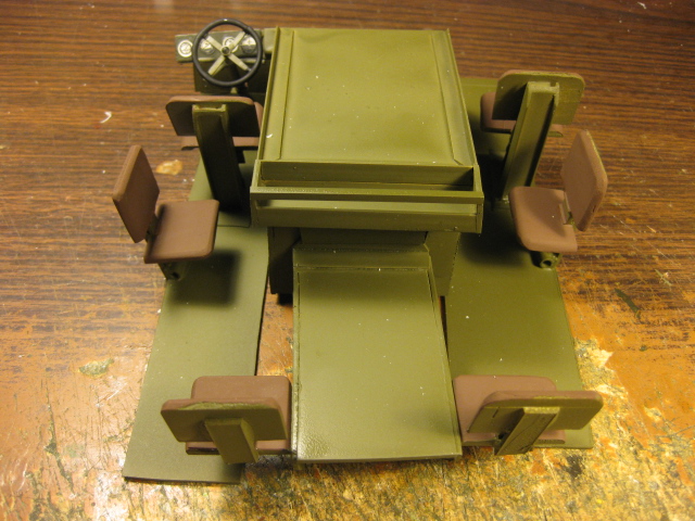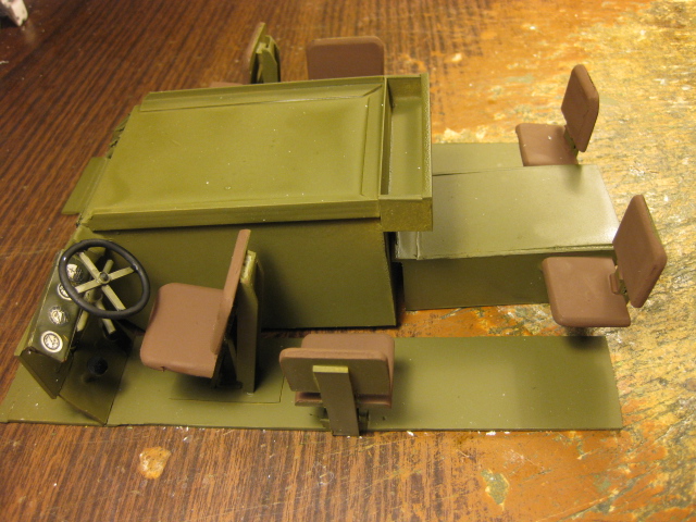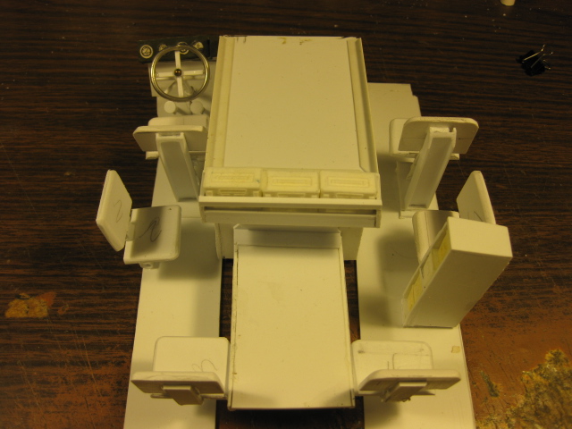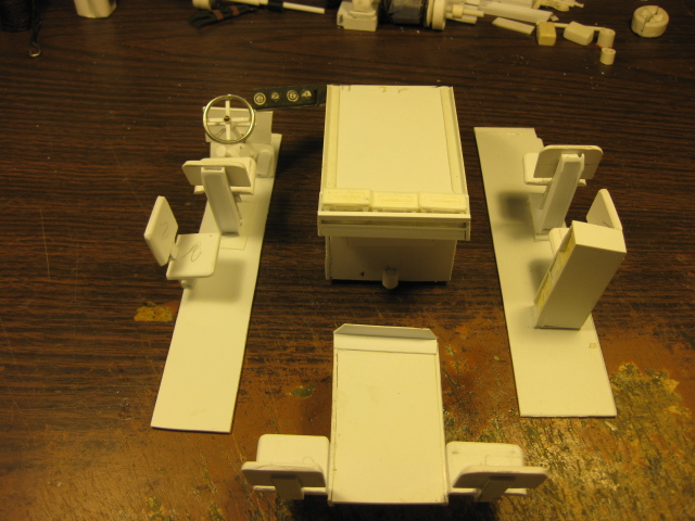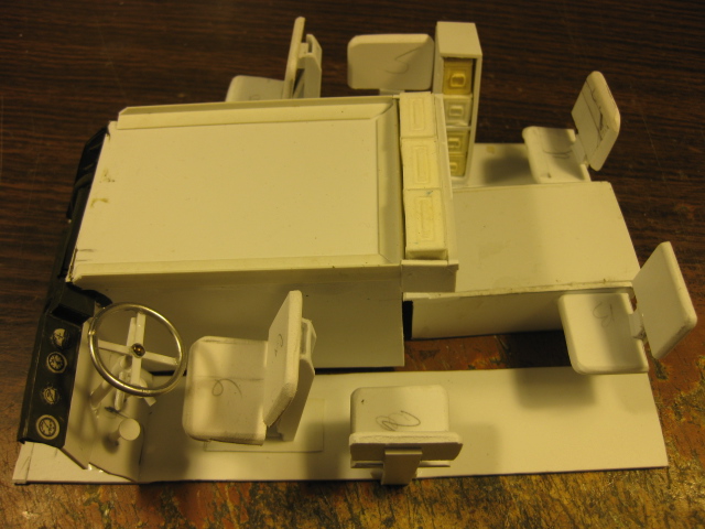While I have been avoiding the building of the winches, I got some work done on the cab interior. I should have built the cab so that the sides and top could be removed from the floor instead of just leaving the top off. Getting everything in through the top made it necessary to build the interior in 4 sections that could be put in through the top.