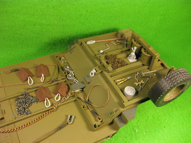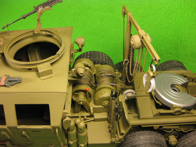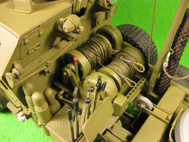 A few days ago I realized I have spent more time thinking about this project and looking at it than I have spent getting it done. I have been jumping from one part of it to another as the mood struck me, but without a completion plan. Daydreaming and avoiding the winches was the plan of the day. Finally, I got my stuff together and went on a "Just Get It Done:" marathon with great enthusiasm and determination. I want to get everything finished in two weeks for a special reason, and I think I can do it. So far, I'm on schedule. I still have the trailer to paint and make sure all of the details on both the M 26 and M15 are done and OK. When the paint is dry and the decals are set, I will rejoice with great gusto and merriment, or maybe just have a beer and take a nap.