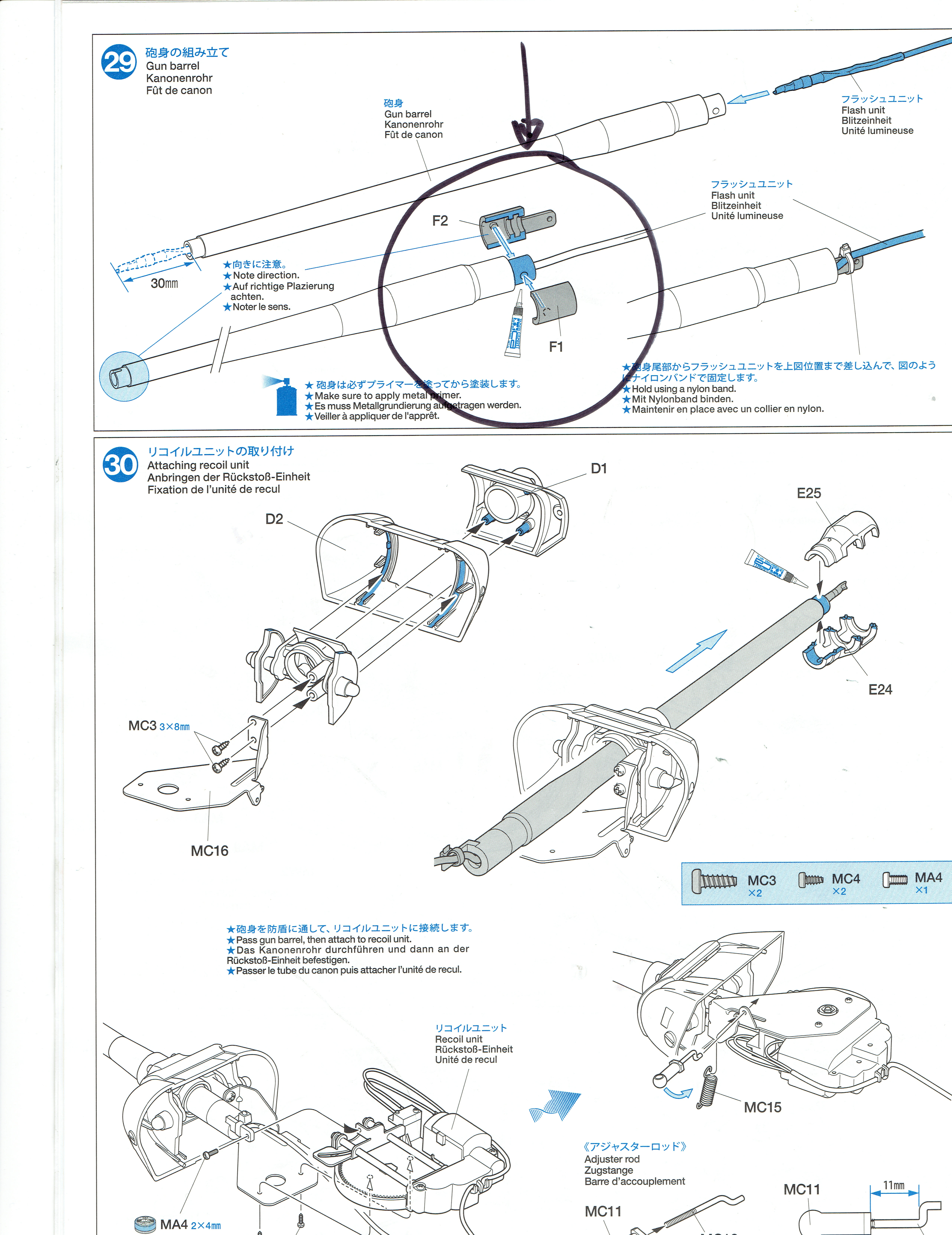 If you need to take out the recoil unit, the recoil stay will need to come loose from the back side of the mantlet. You'll also need to disconnect the black ABS part that connects the barrel to the recoil unit (on the F sprue). Once you do all that, it should come out. Tight, but not impossible.