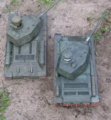 Here is a couple of pics of T-34 AND t-44 side by side in Russian Armour Green. T-34 is in front and 44 to the rear. Top view the 44 has the longer turret on the right. The 34 has been dull coated and has to Danville runs to its credit and the 44 has a darker wash and a semi-gloss finish. It has been to Danville just once and going again in a couple of weeks.